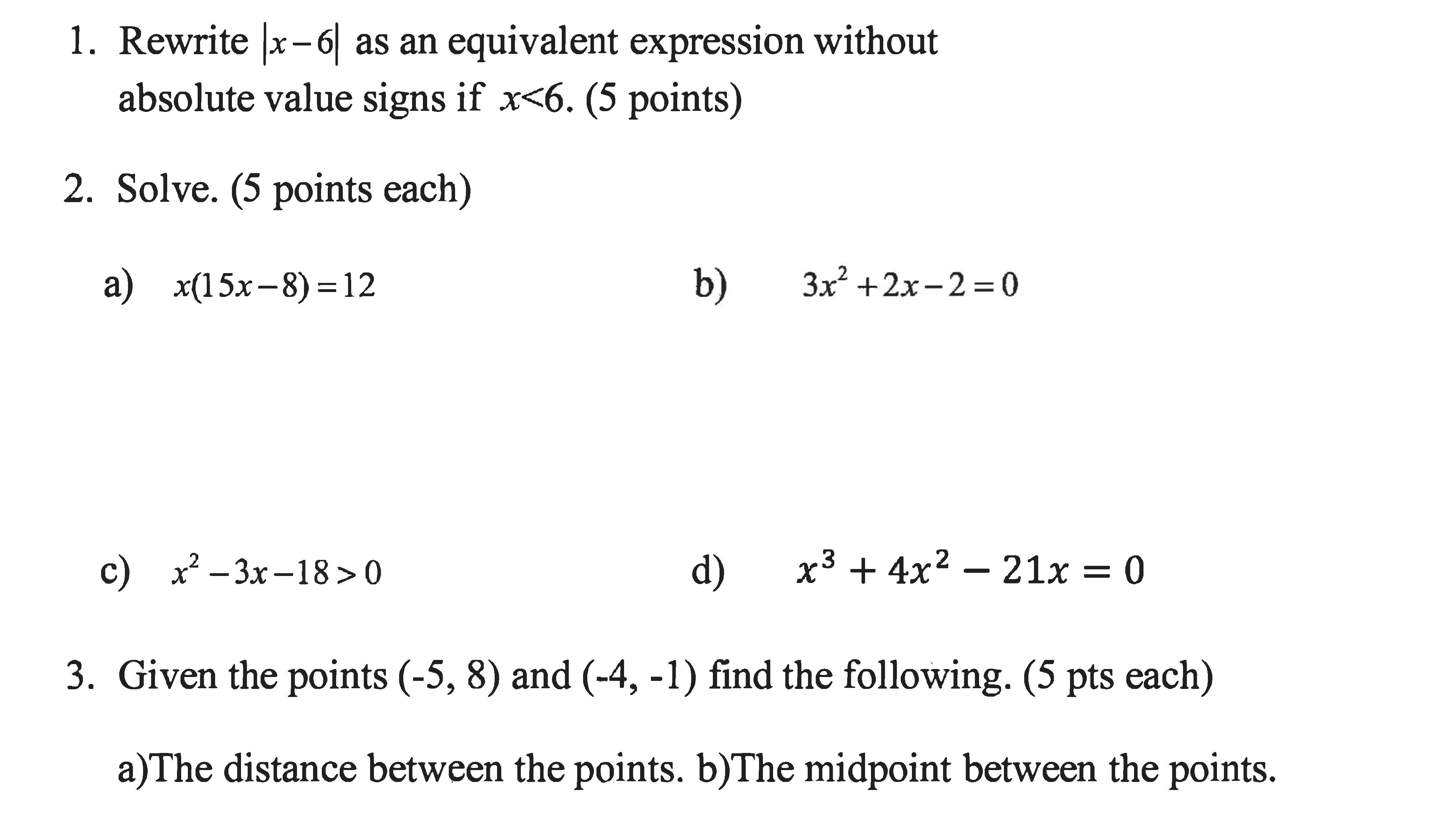 1. Rewrite x-6/ as an equivalent expression without absolute valu...