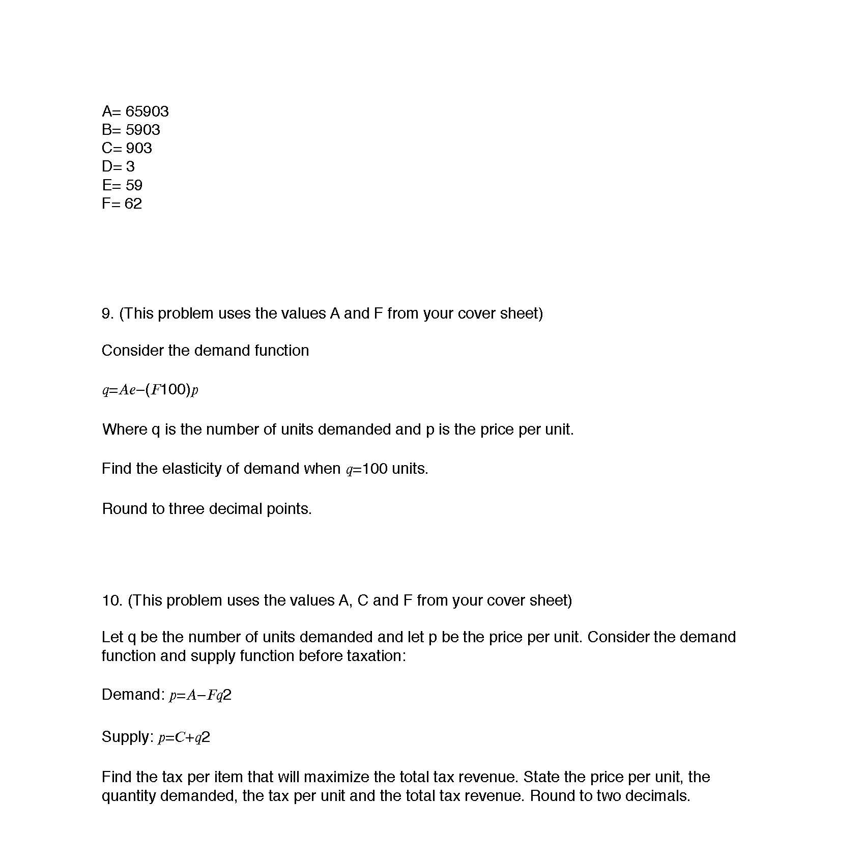 A= 65003 B= 5903 C= 903 D= 3 E- 50 F- 82 9. (Ihis problem use...