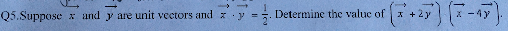 --, Q5.Suppose x and y are unit vectors and x y = ) Determine the v...