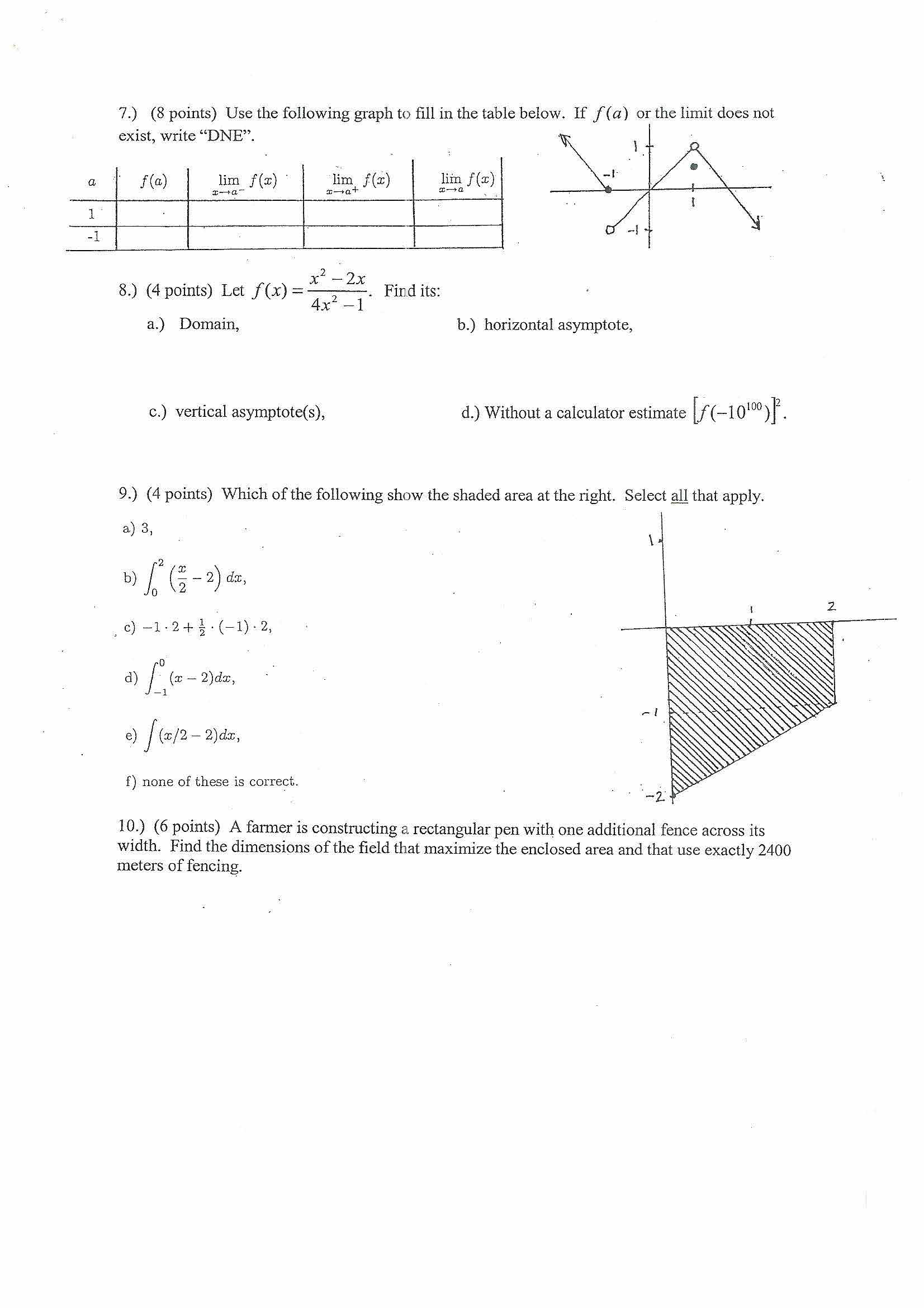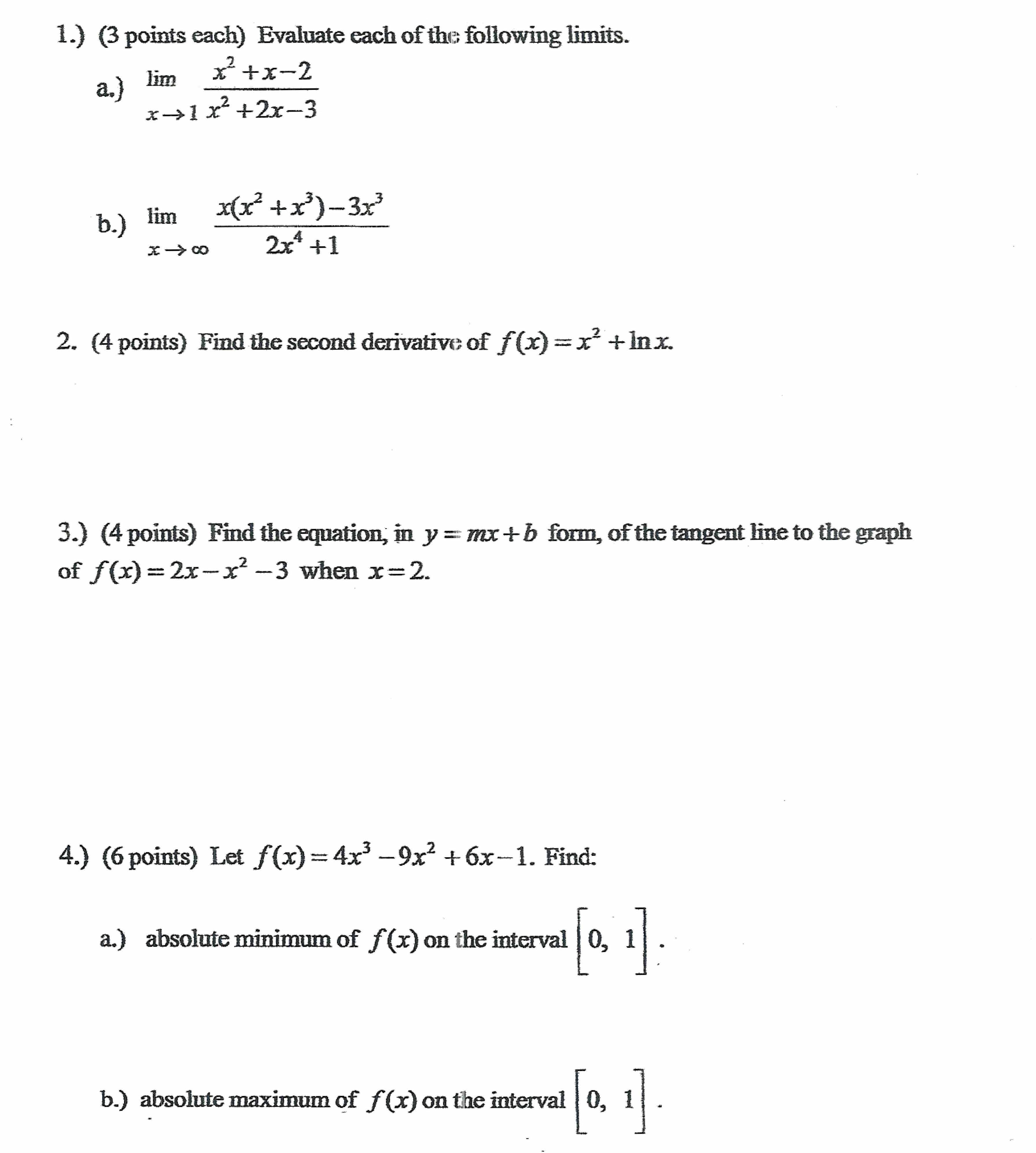 1.) (3 points each) Evaluate each of the following limits a.) b.)...