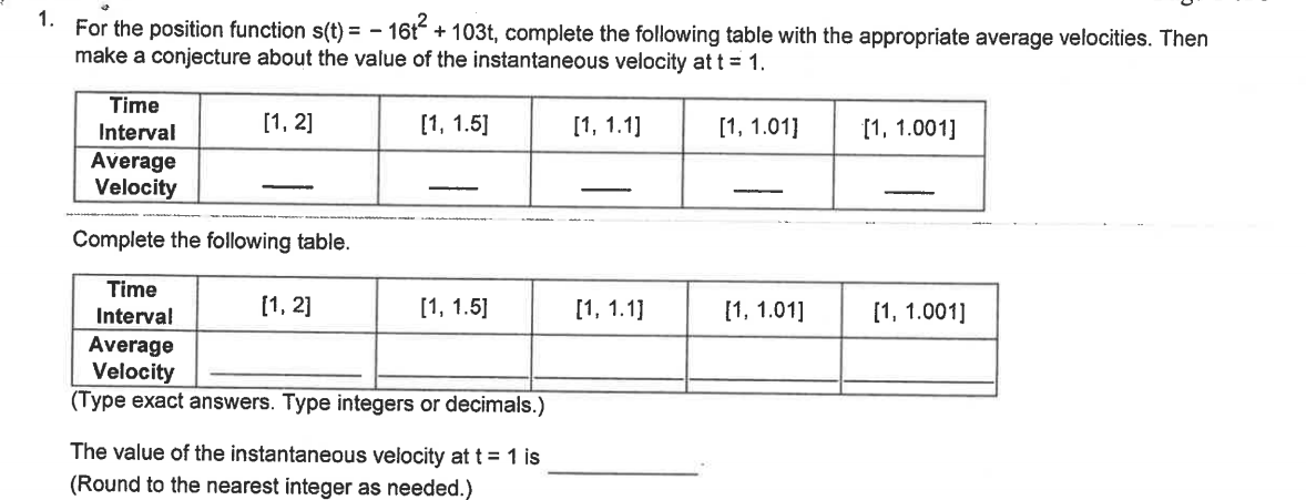 1. For the position function s(t) = - 182 + 103t, complete the f...