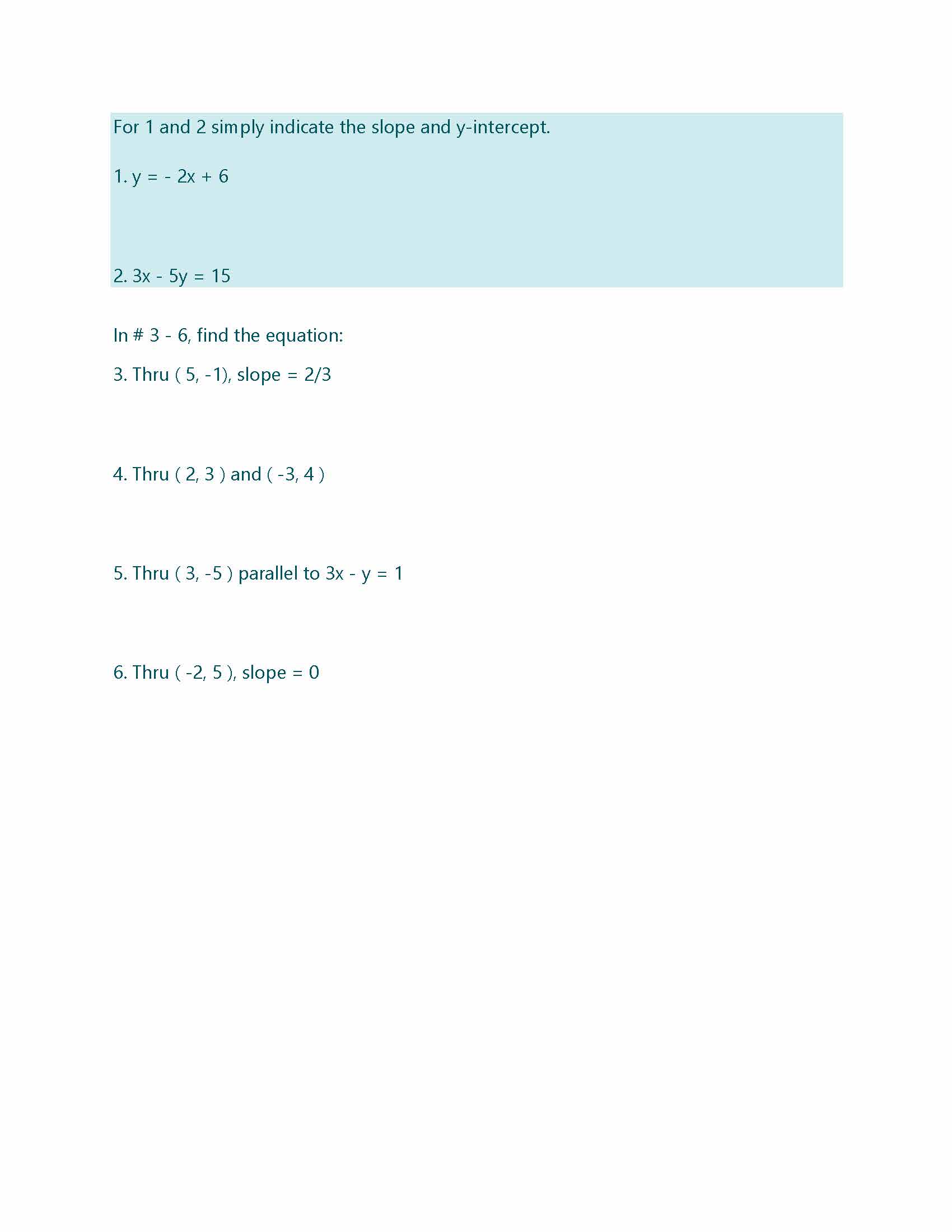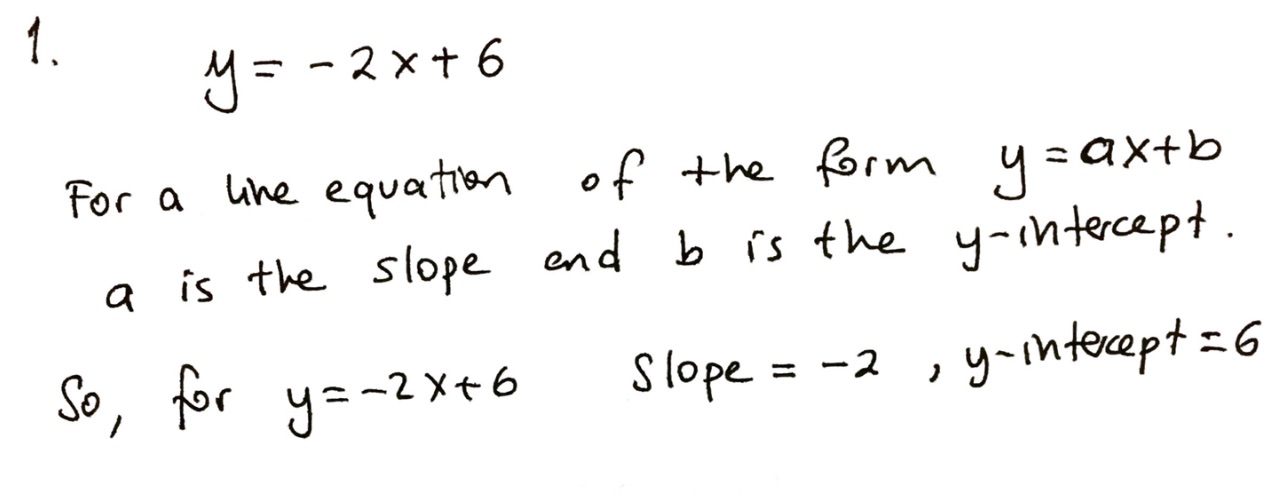 For 1 and 2 simply indicate the slope and y-intercept. 1. y = -...