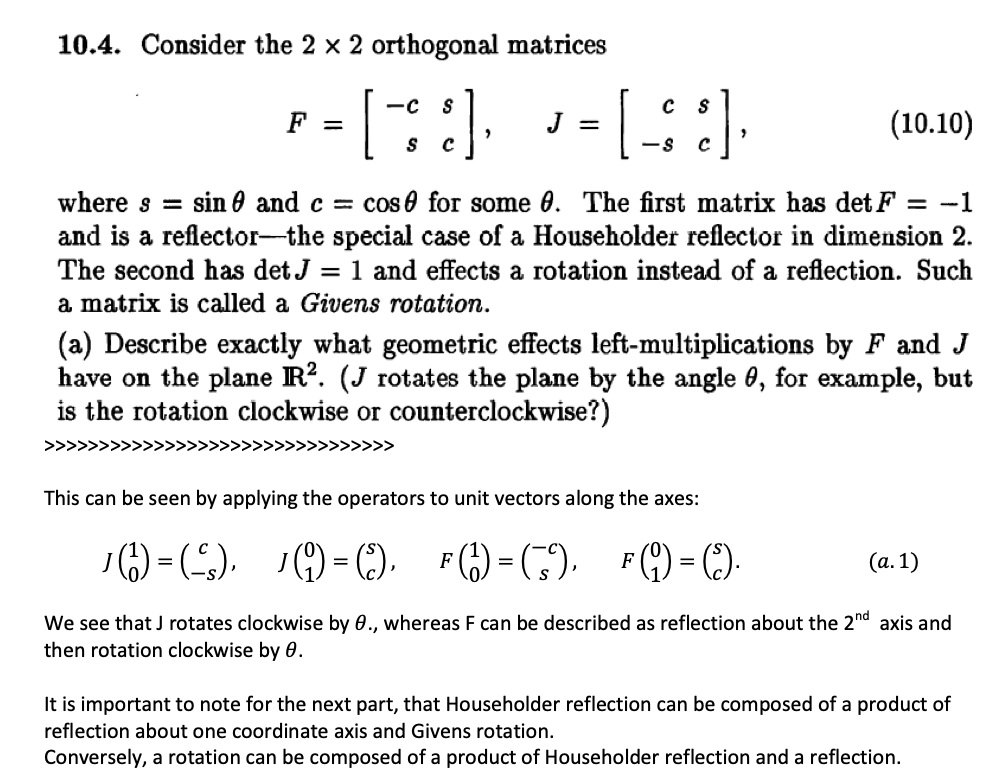 10.4. Consider the 2 x 2 orthogonal matrices F = (:: S , J = I c...