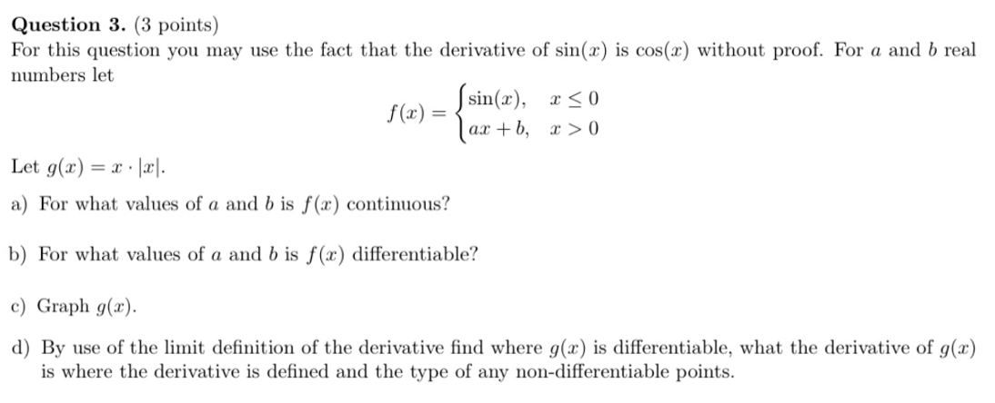 Question 3. (3 points) For this question you may use the fact that...