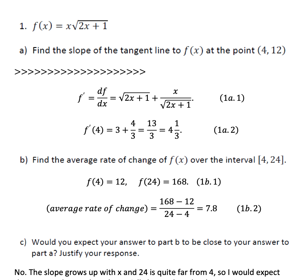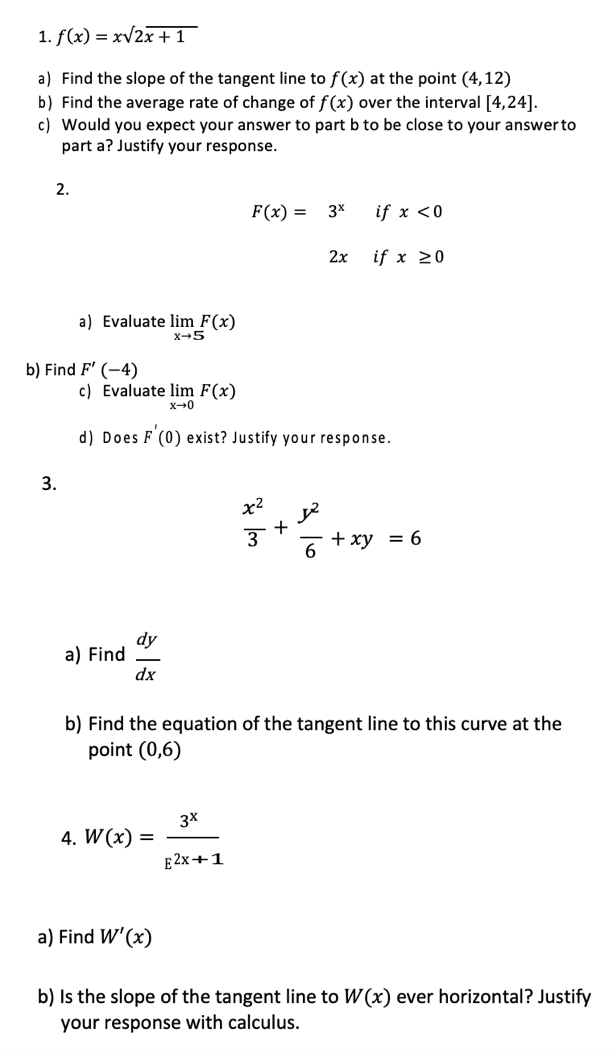 1.f(x) = 2x + a) Find the slope of the tangent line to f (x) at th...