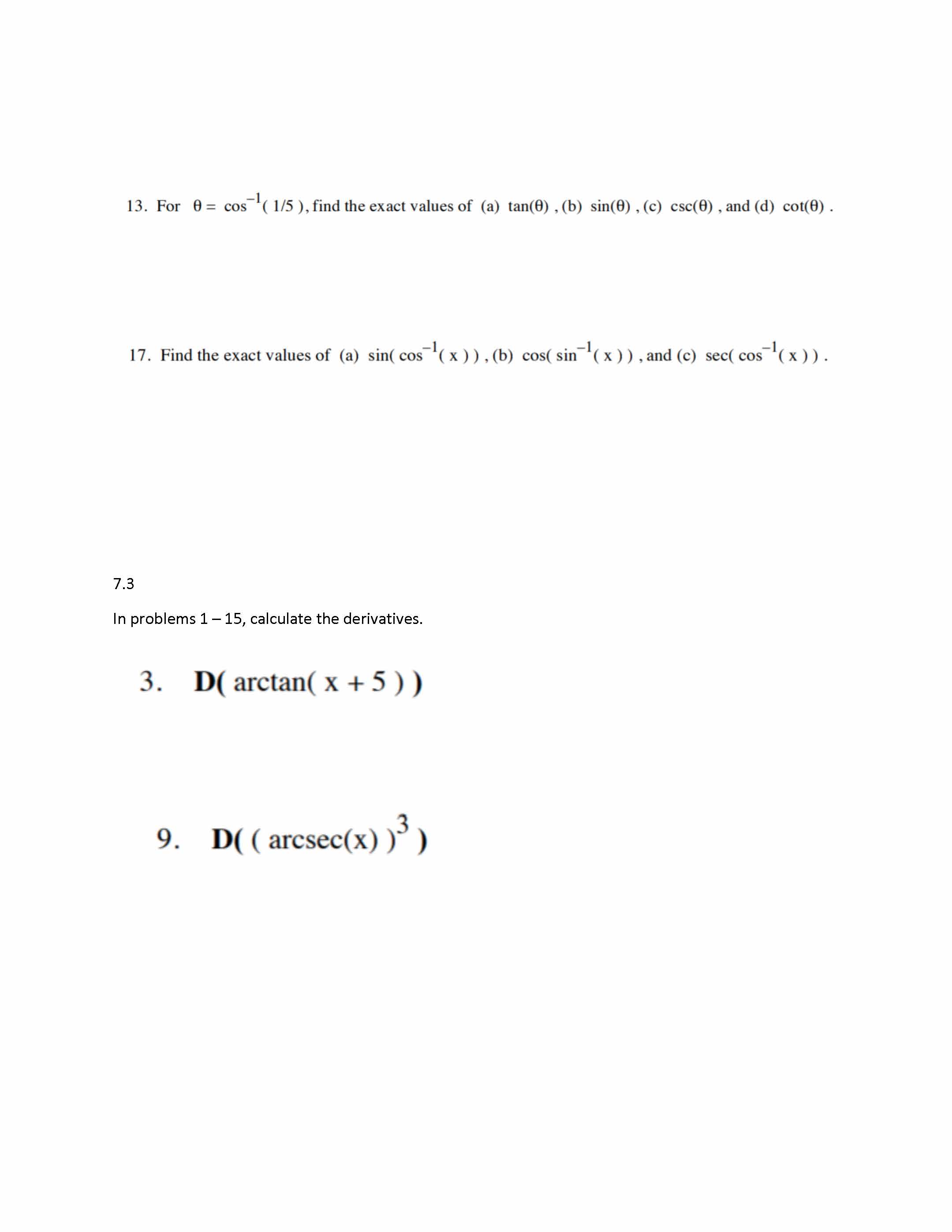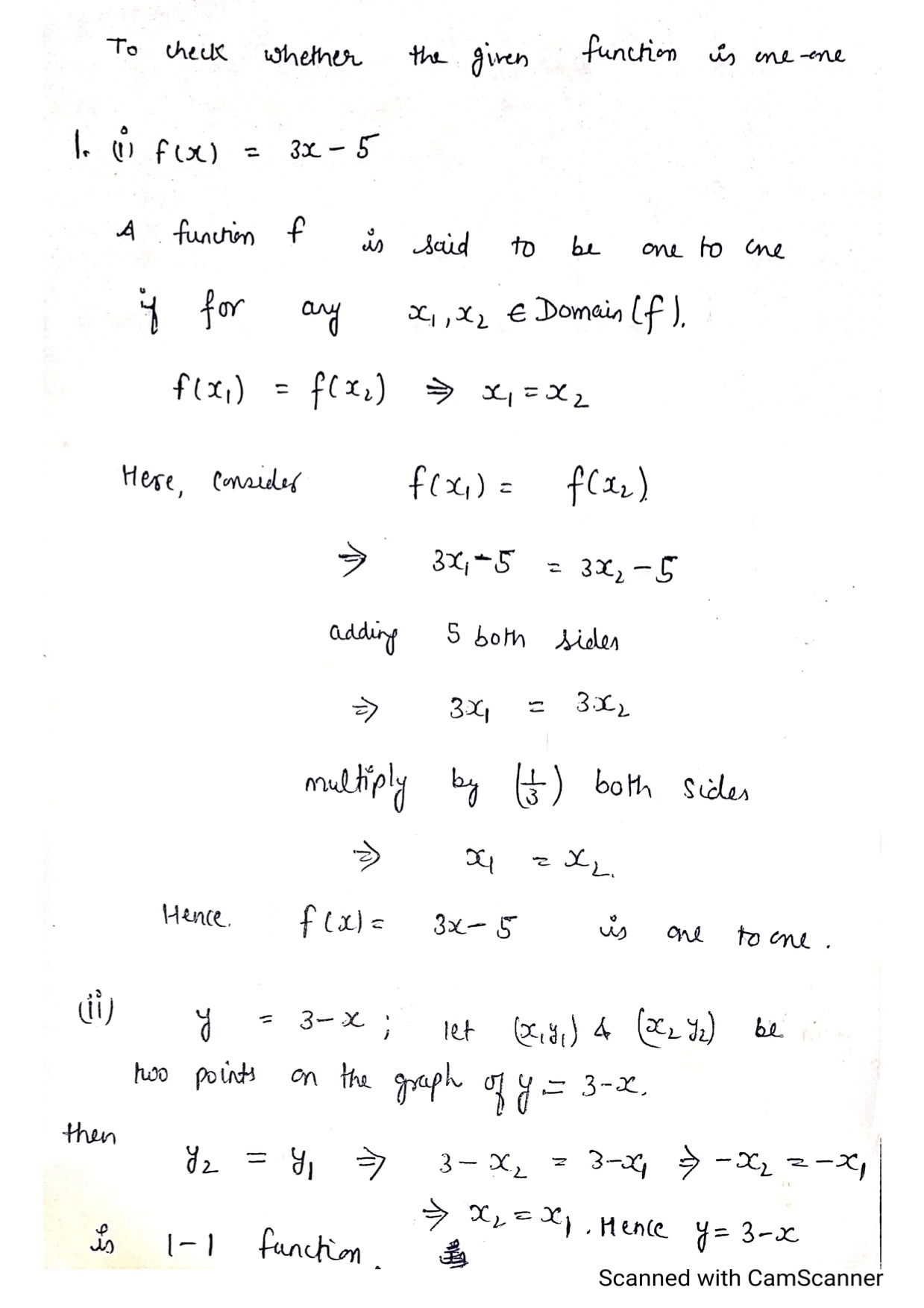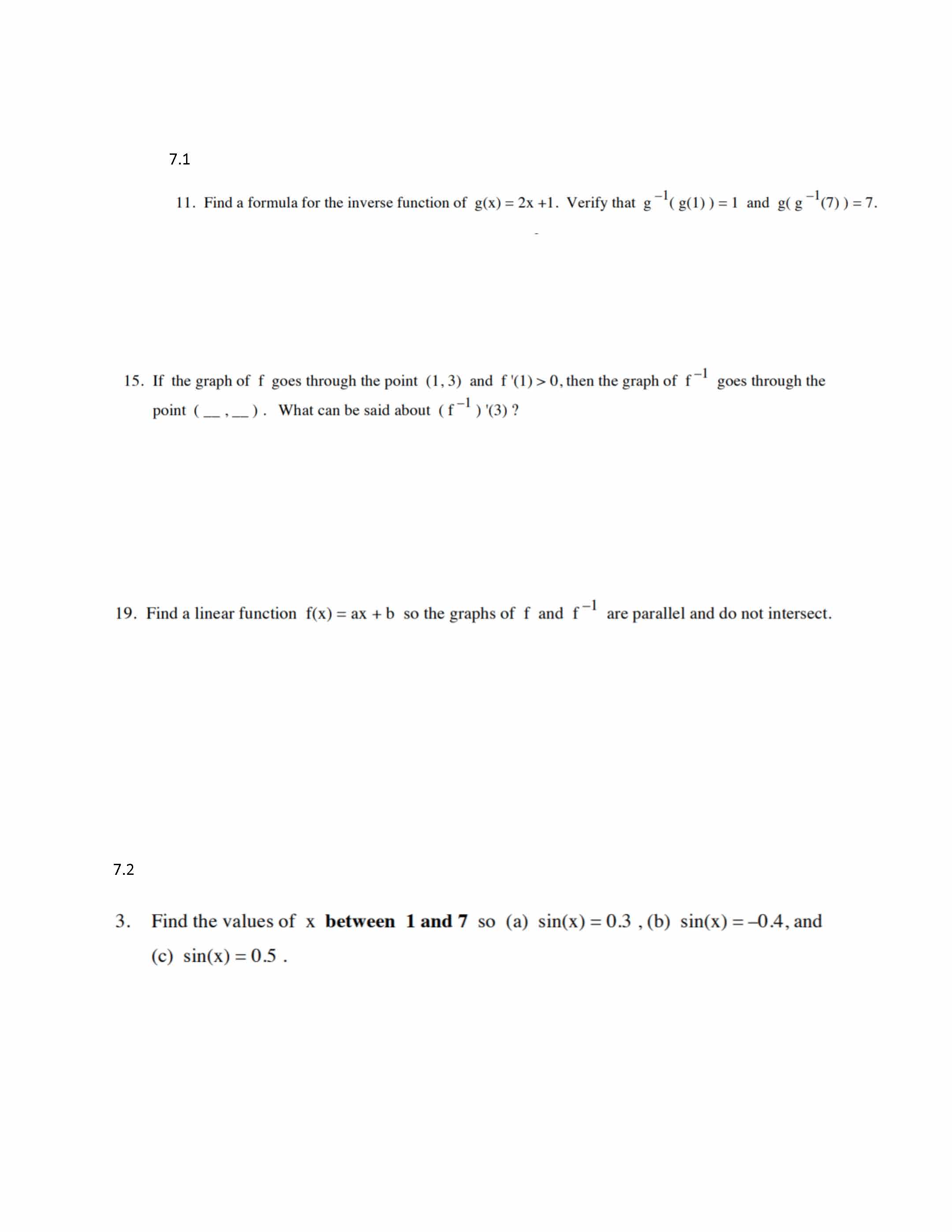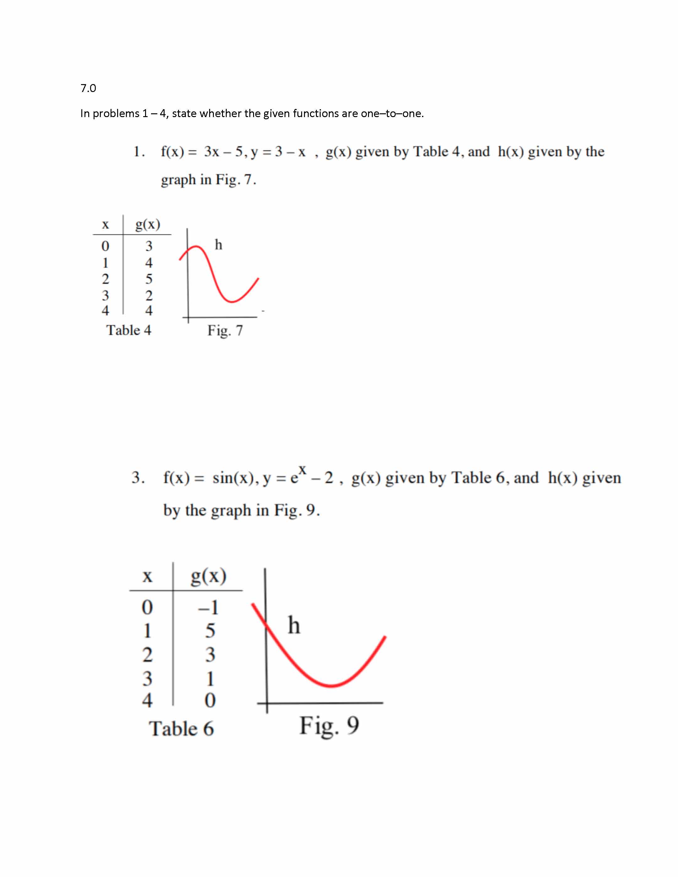 7.0 In problems 1-4, state whether the given functions are one-to-...