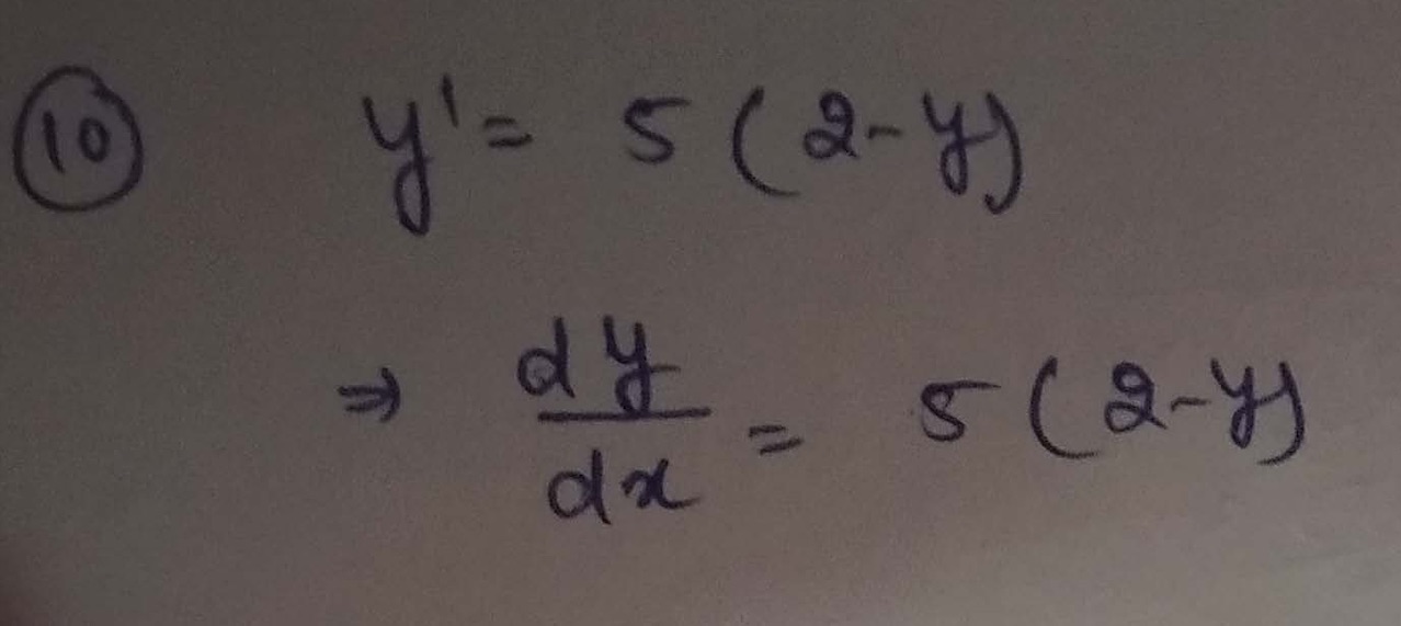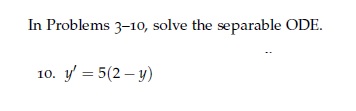 In Problems 3-10, solve the separable ODE. 10. y' = 5(2-y) -
