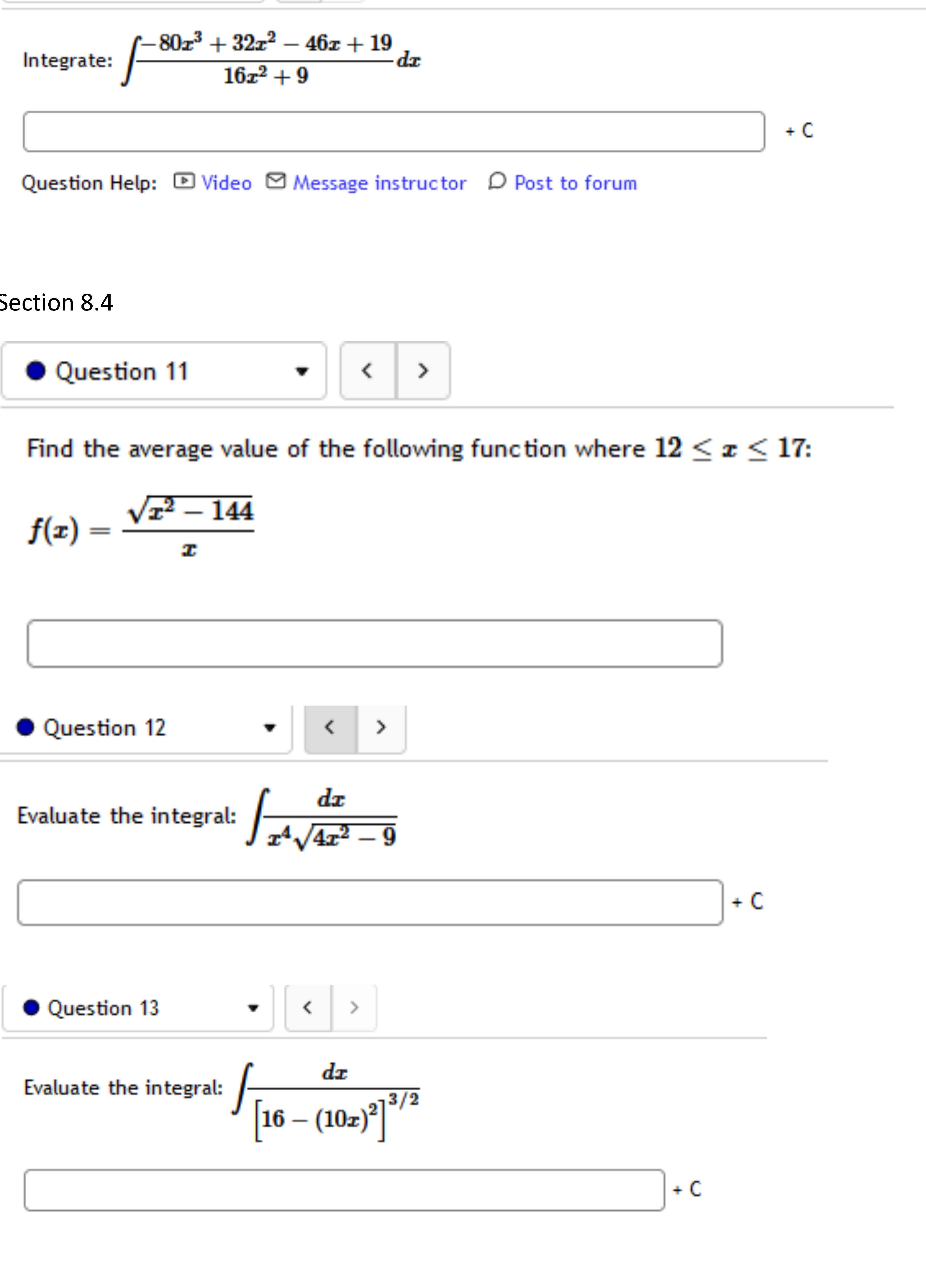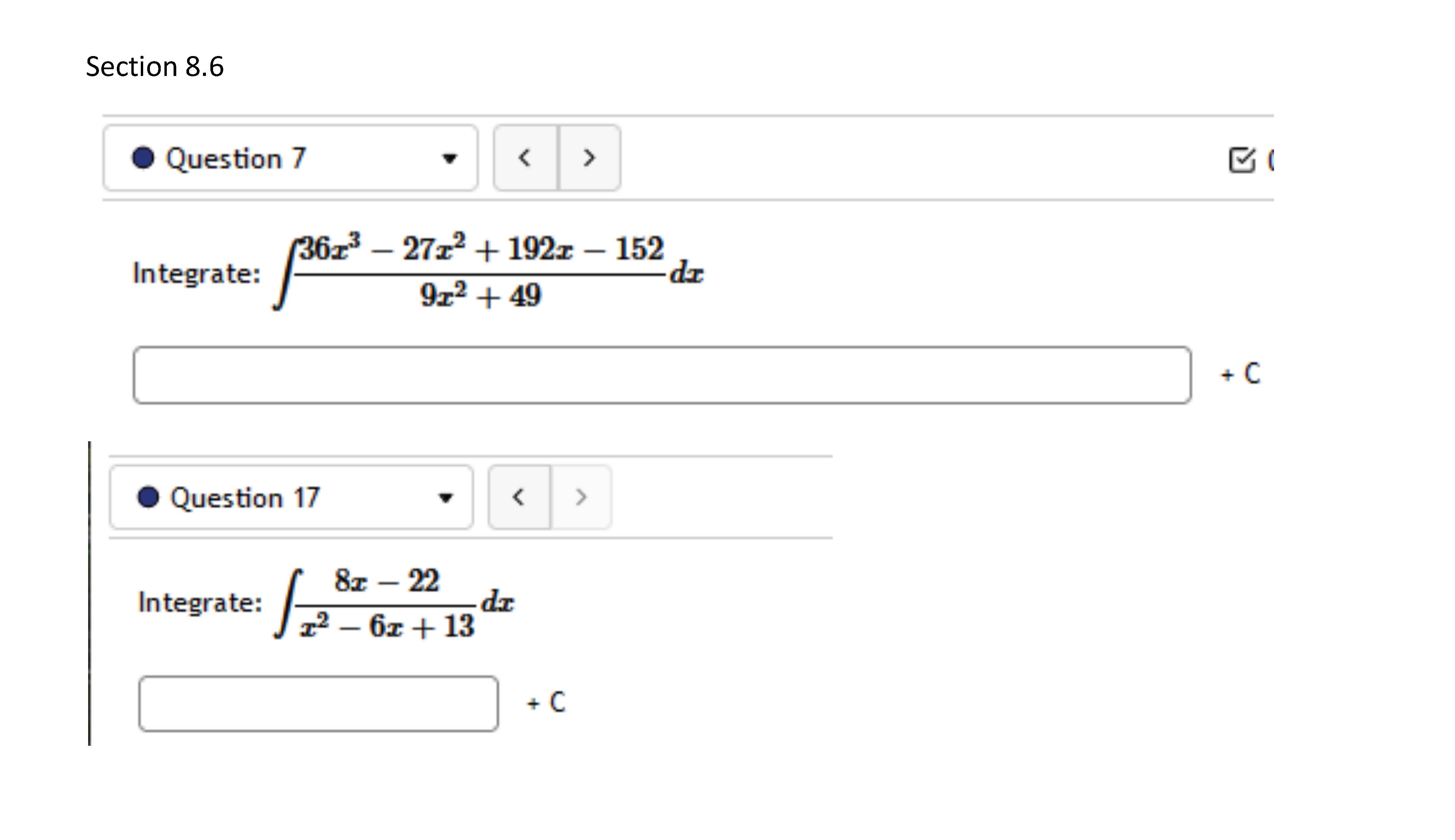 Section 8.3 Question 9 < > pass 9.³ dx + 6x² + 64x ...