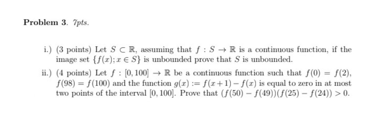 Problem 3. 7pts. i.) (3 points) Let S C R, assuming that f : S R...