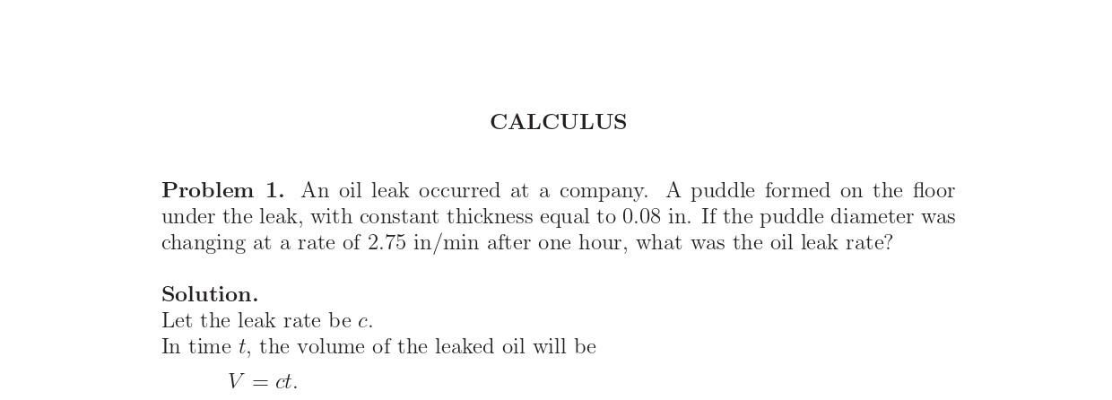 Problem 1. An oil leak occurred at a company. A puddle formed on th...