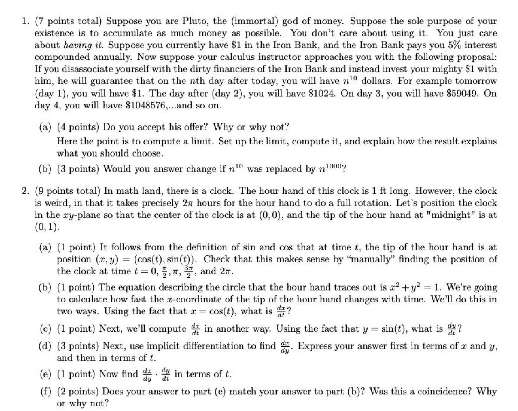 1. (7 points total) Suppose you are Pluto, the (immortal) god of mo...