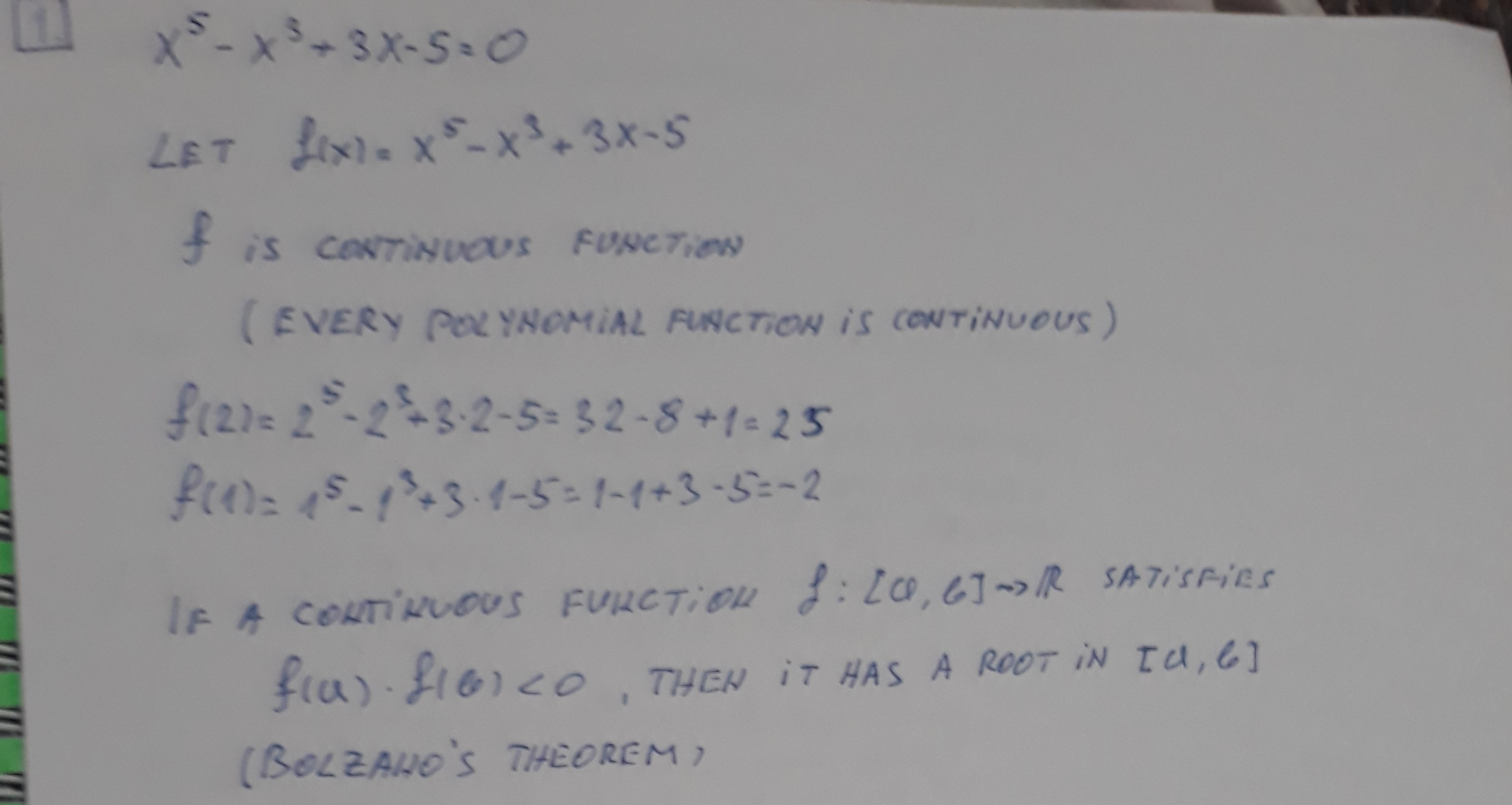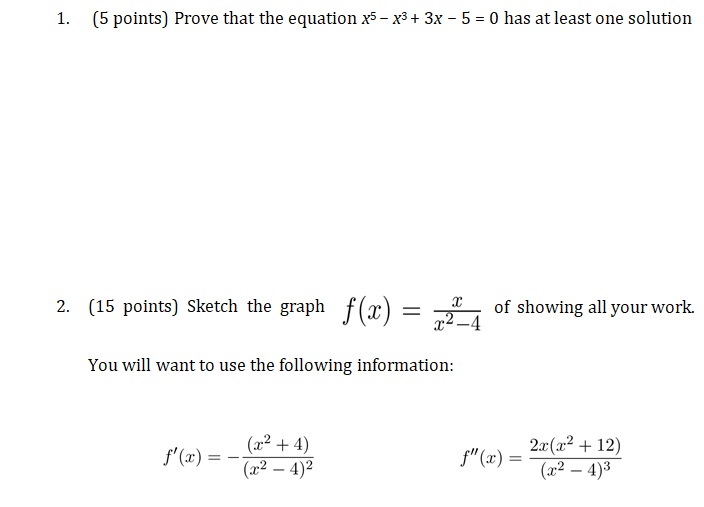 1. (5 points) Prove that the equation x5-x3+3x - - 5 = 0 has at lea...