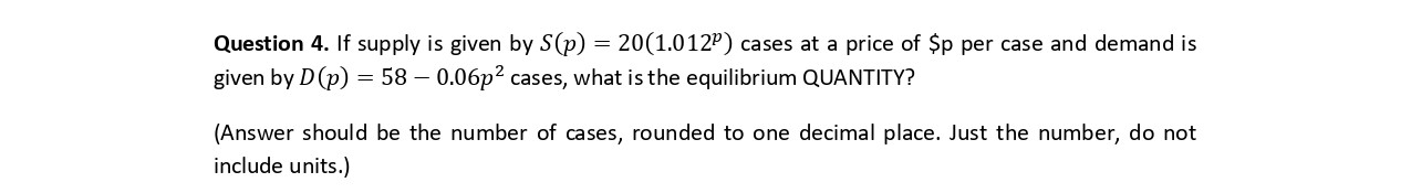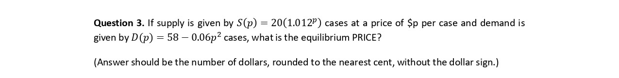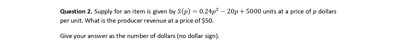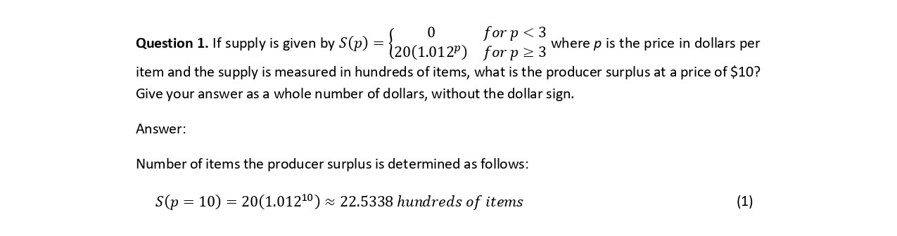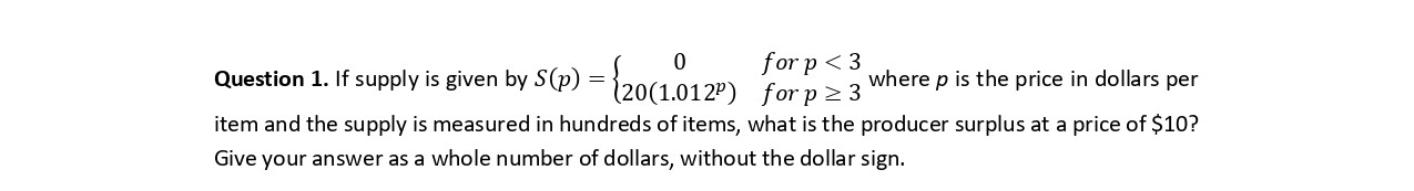 Question 1. If is = supply given by S(p) {20(1.012P) 0 for p whe...