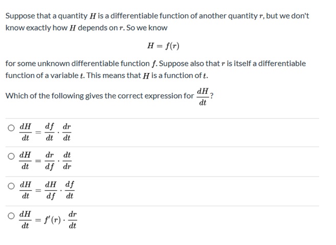 Suppose that a quantity H is a differentiable function of another q...