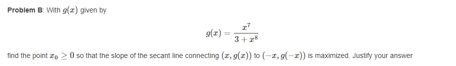 Problem B. With g(x) given by find the point IO 0 so that the slop...