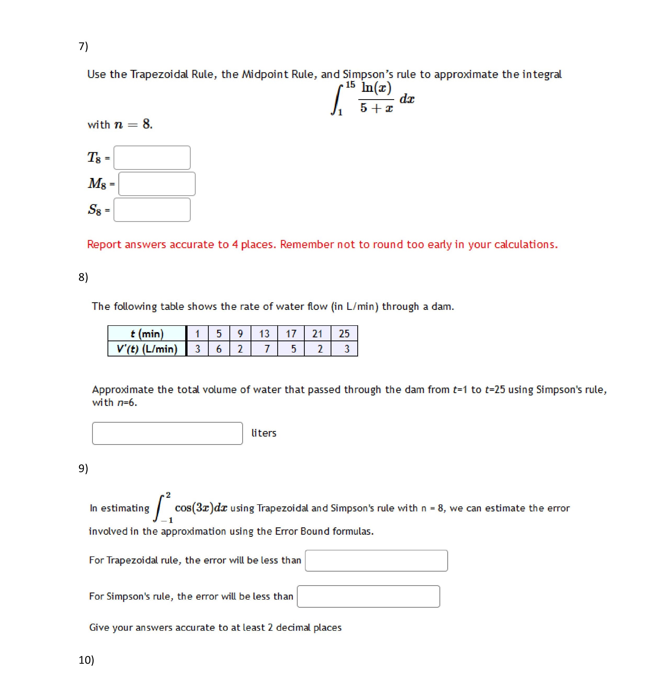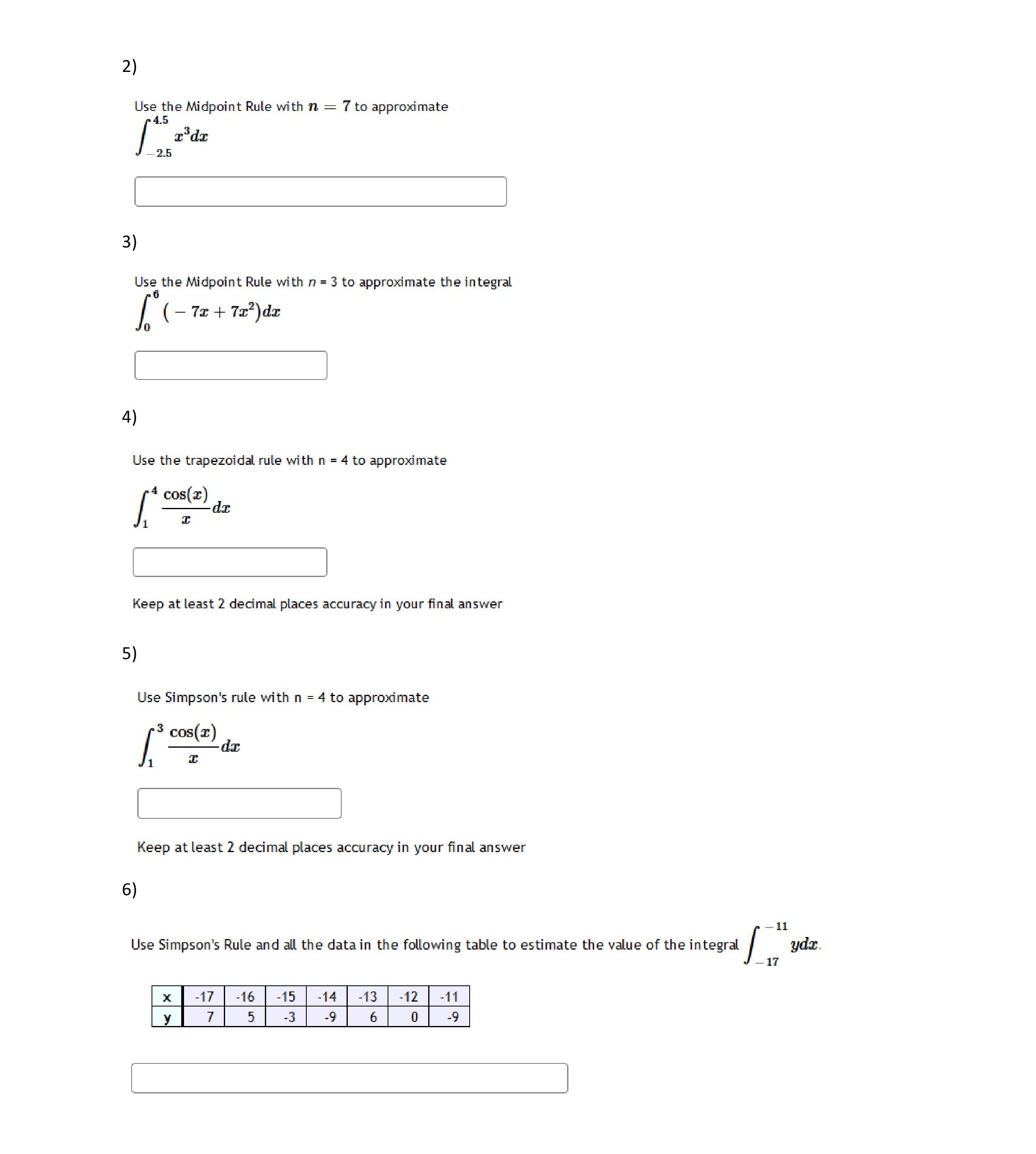 2) Use the Midpoint Rule with n = 7 to approximate 4.5 x3dx 2.5...