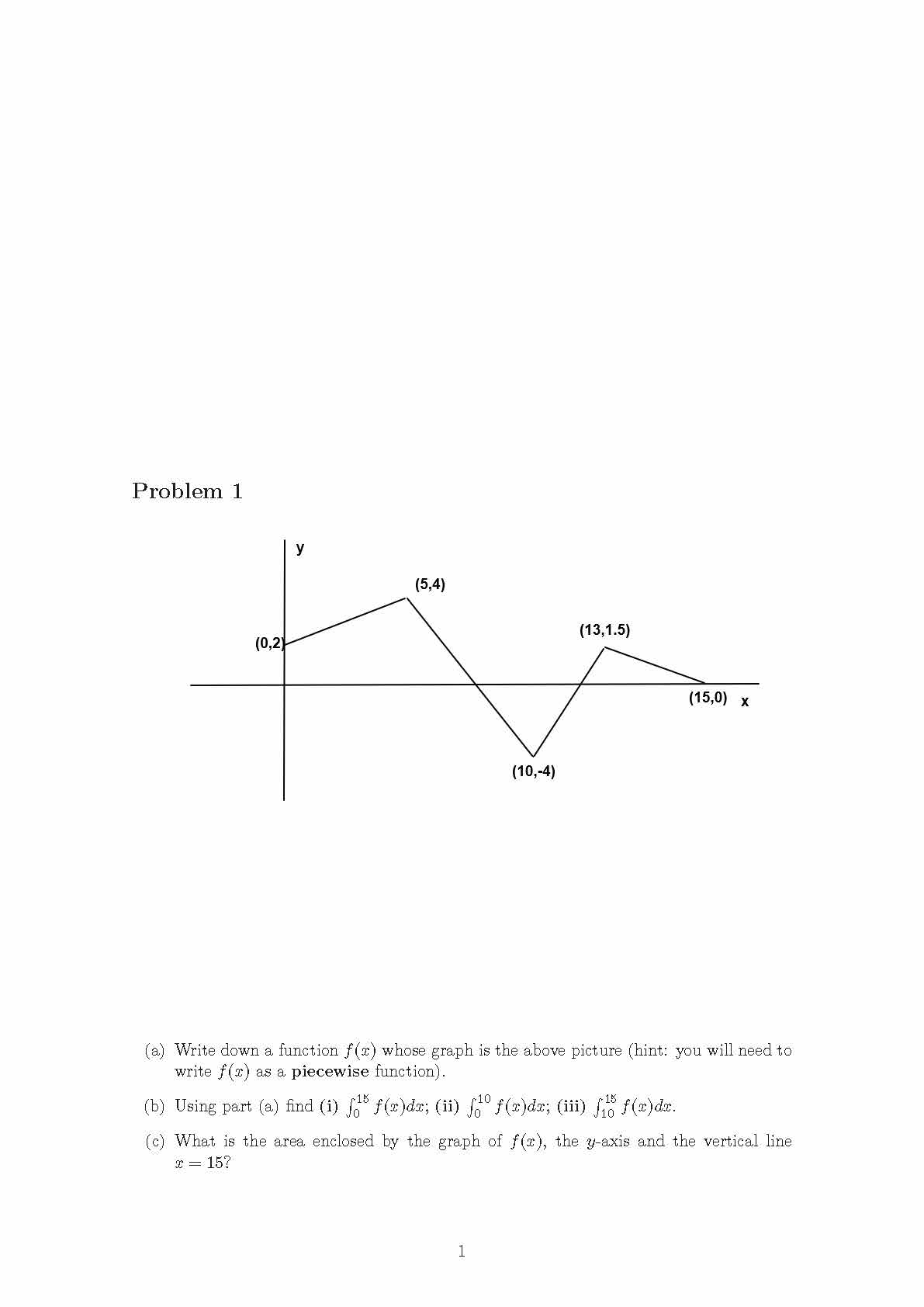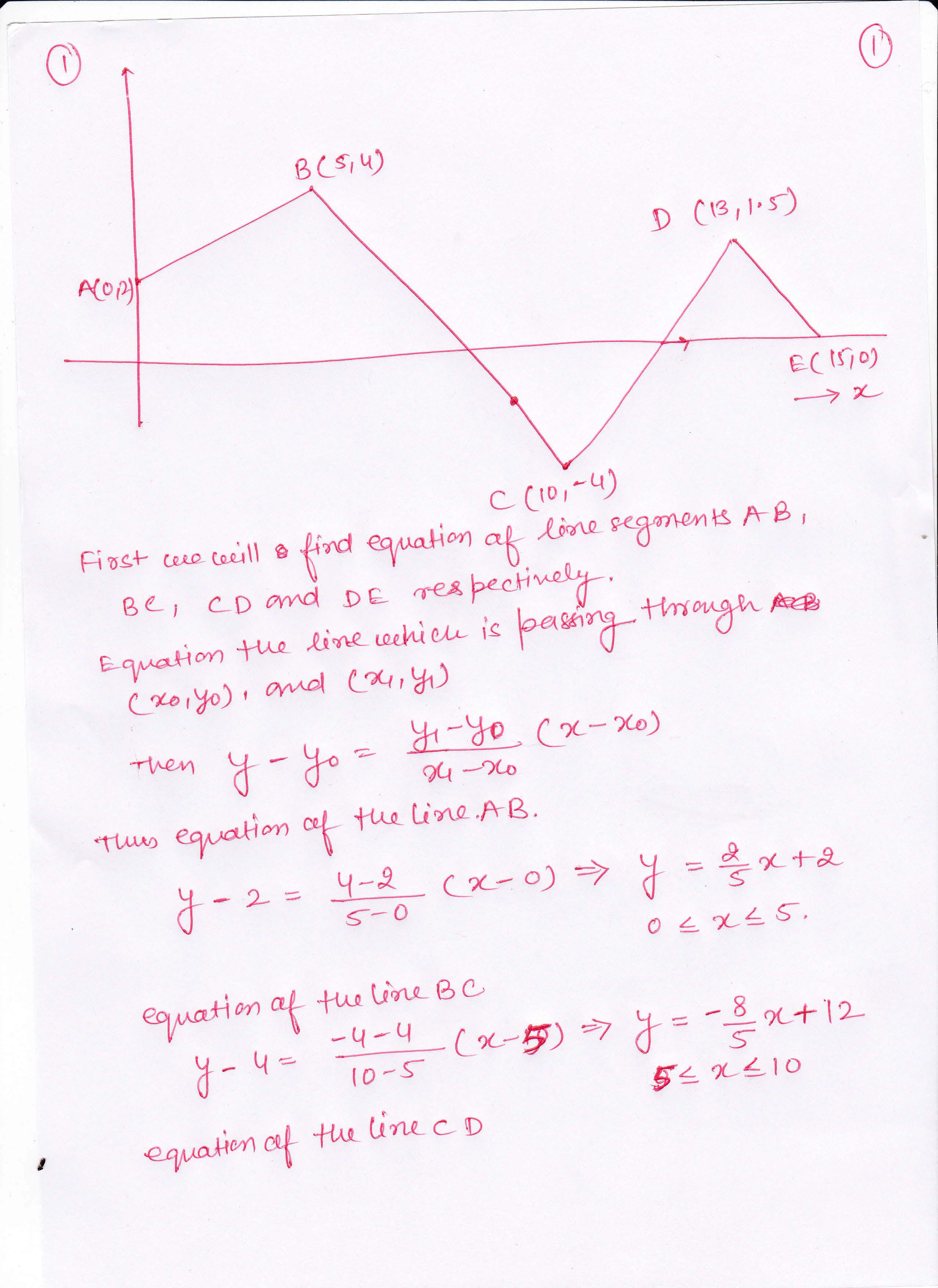 Problem 1 y (5,4) (13,1.5) (0,2) (15,0) (10,-4) (a) Write do...