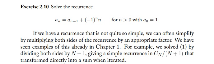 Exercise 2.10 Solve the recurrence an=an-1+(-1)"n for n >...