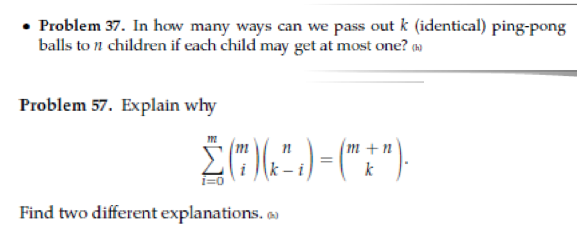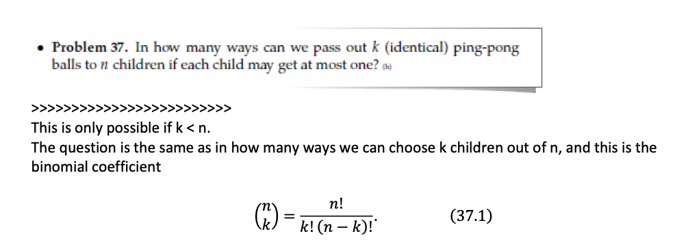 Problem 37. In how many ways can we pass out k (identical) ping-pon...