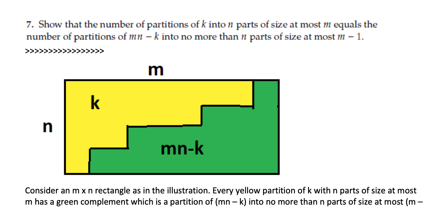 1. Show that the number of partitions of k into n parts of size at...