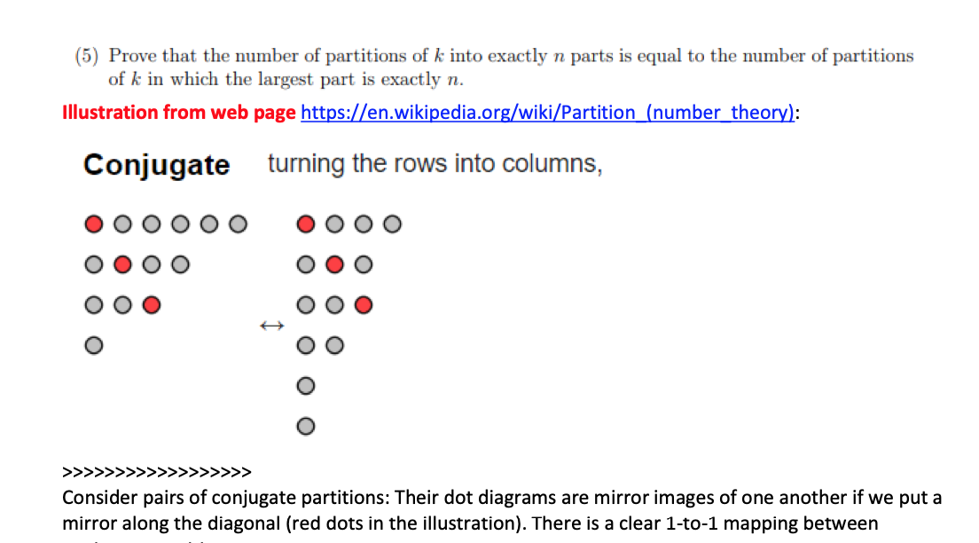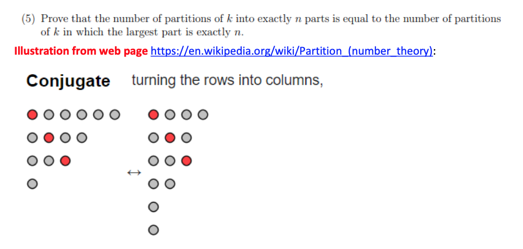 (5) Prove that the number of partitions of k into exactly n parts i...