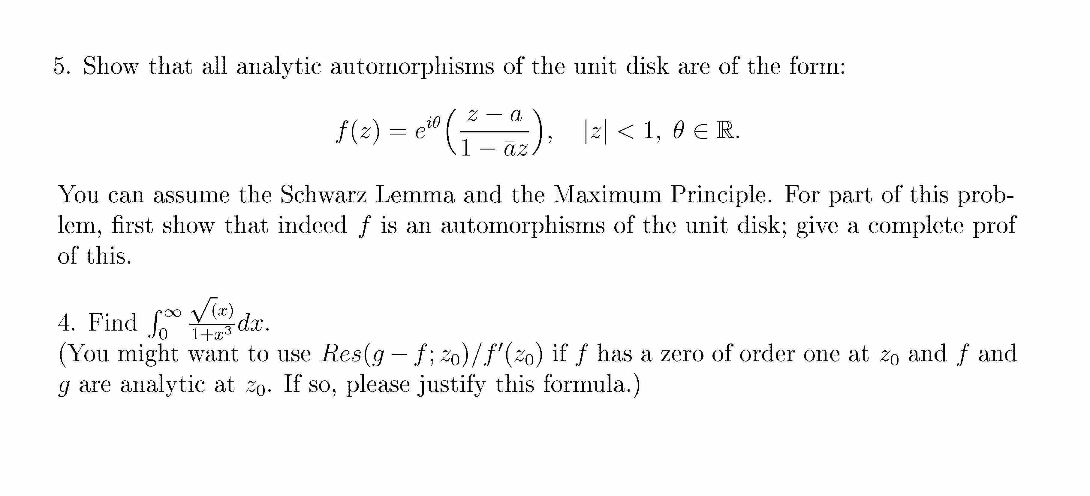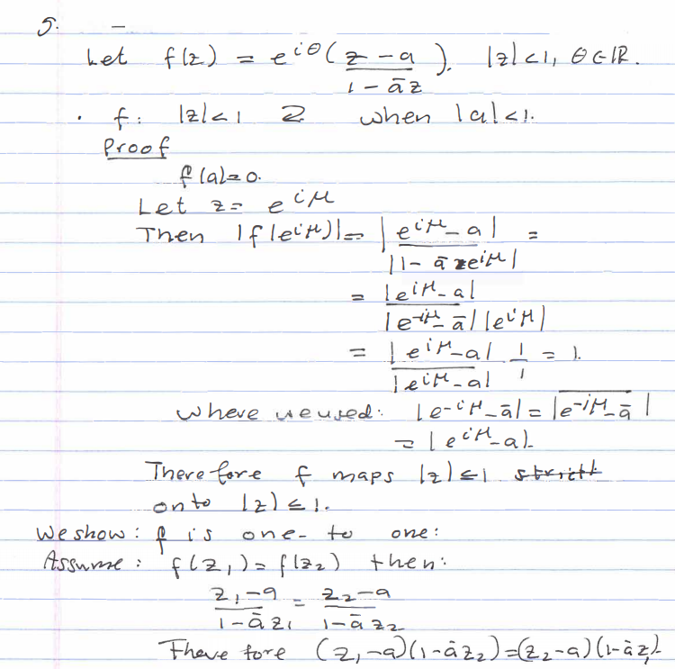 5. Show that all analytic automorphisms of the unit disk are of the...