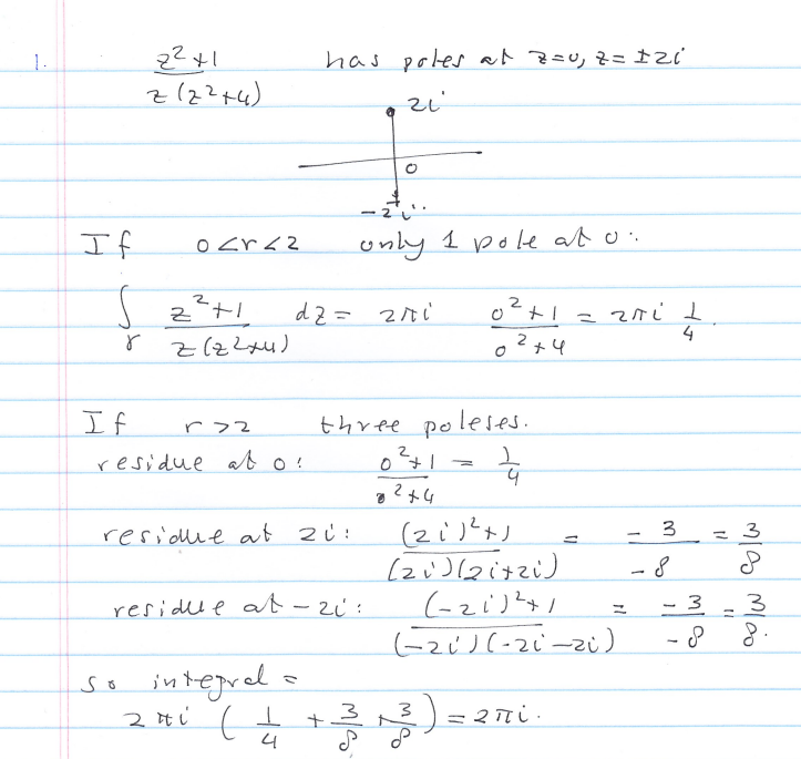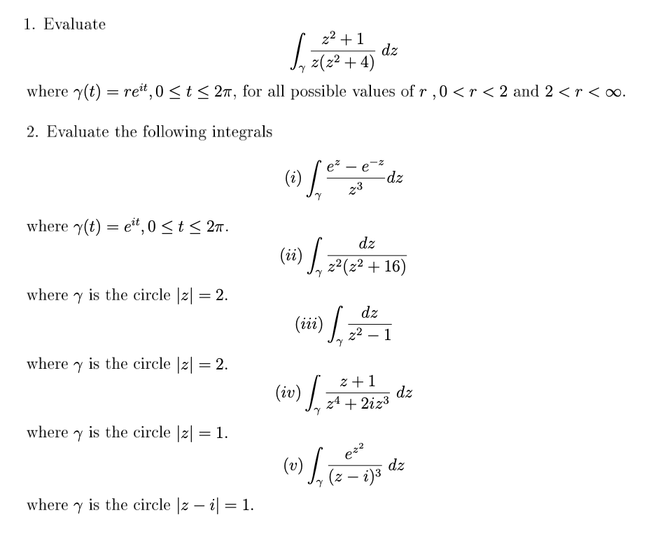 1. Evaluate z²+1 dz where n(t) = for all possible values of r ...
