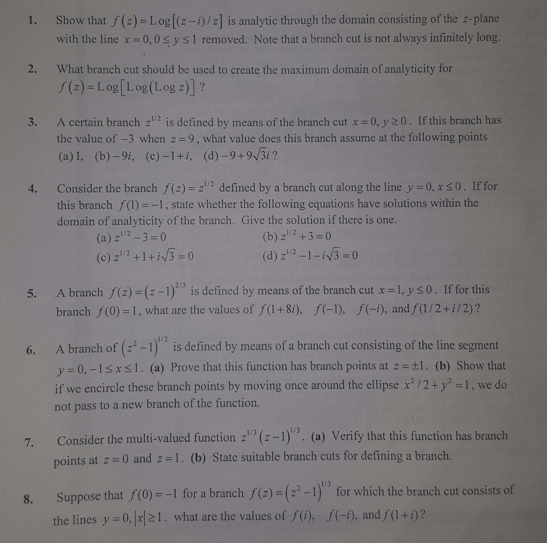 1. Show that (z)=Log[(z-i)/z is analytic through the domain consis...