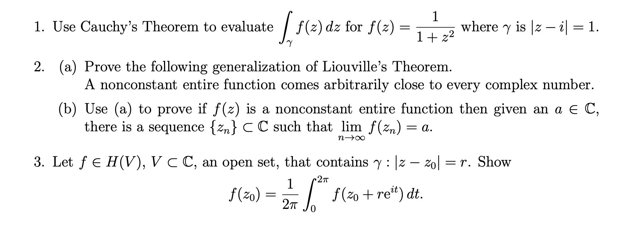 Use Cauchy's Theorem to evaluate / f(z) dz for f (z) = 1 1. wher...