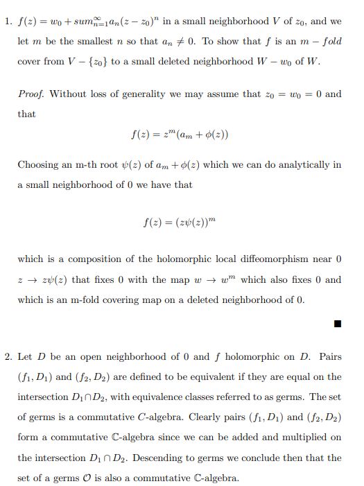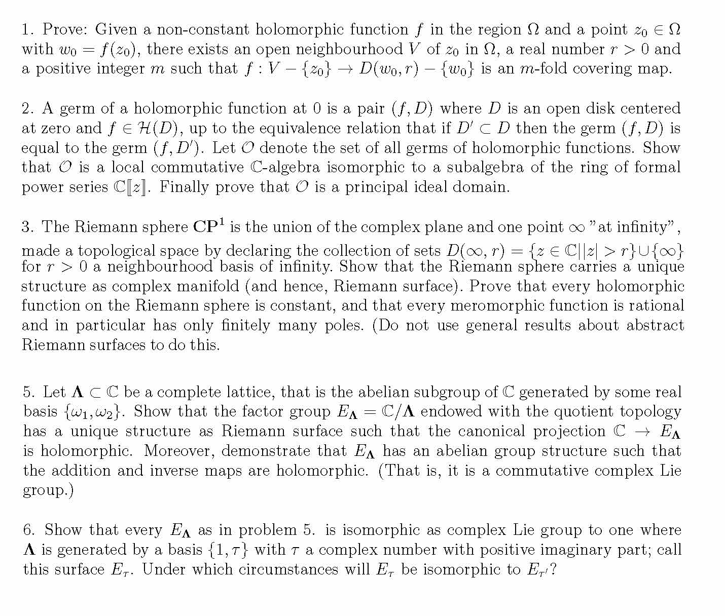 1. Prove: Given a non-constant holomorphic function f in the region...