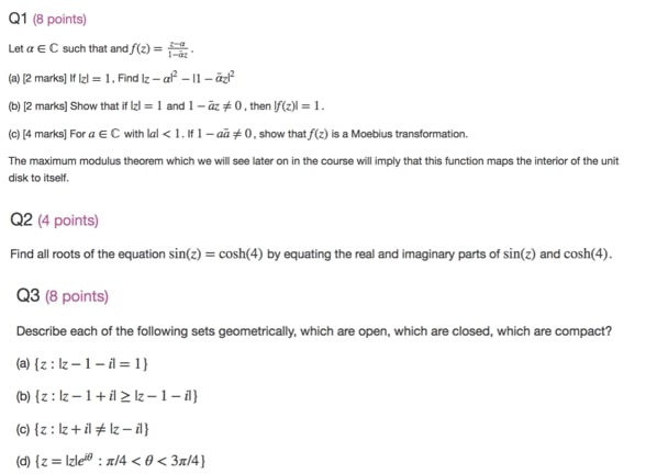 Q1 (8 points) Let a € C such that and f(z) = 1- (a) [2 marks] I...