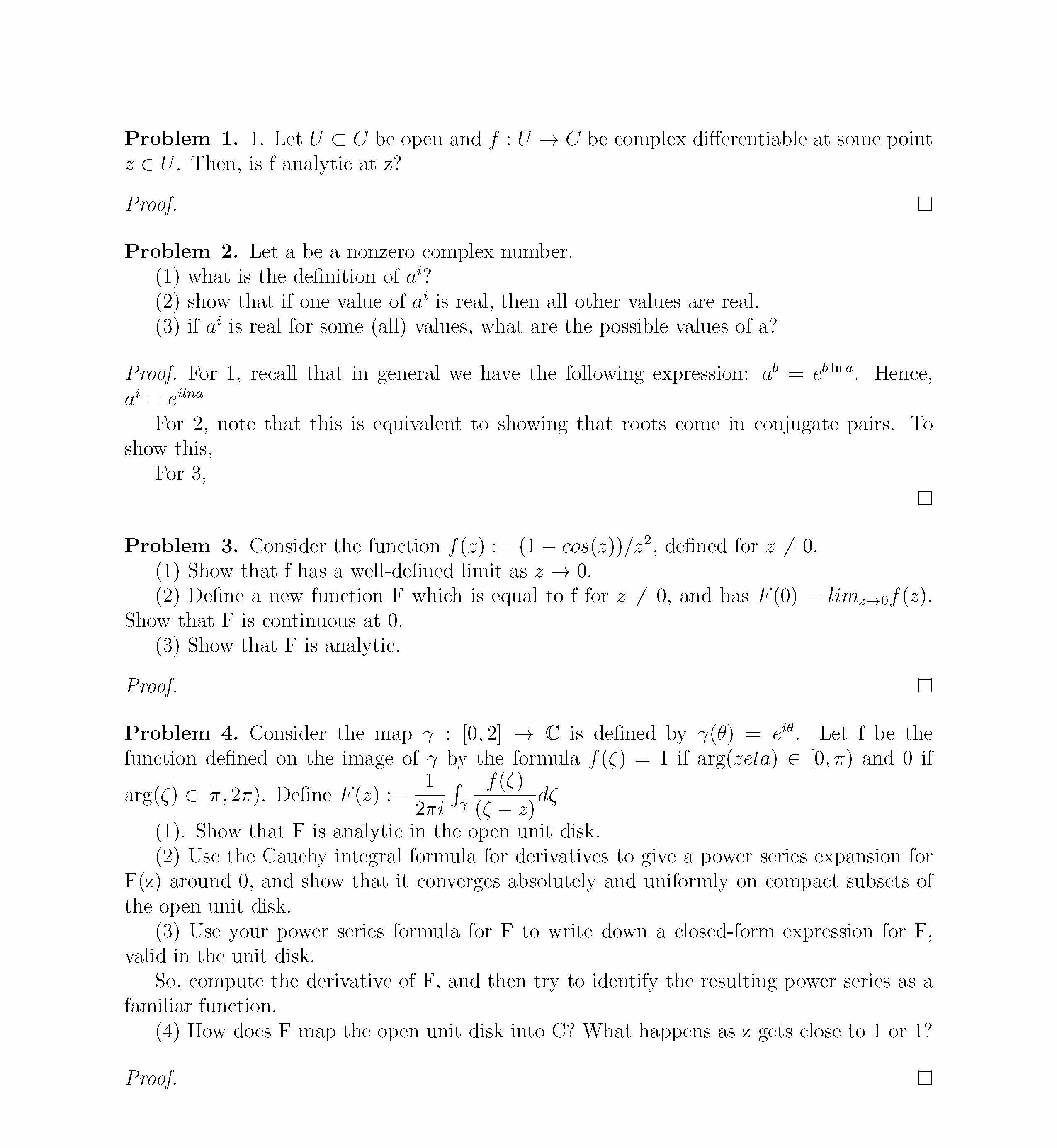 Problem 1. 1. Let U C C be open and f : U C be complex differentiab...
