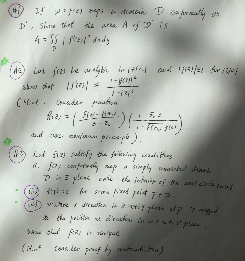 #1, If W=f(Z) maps a domain D conformally on D' show that the are...