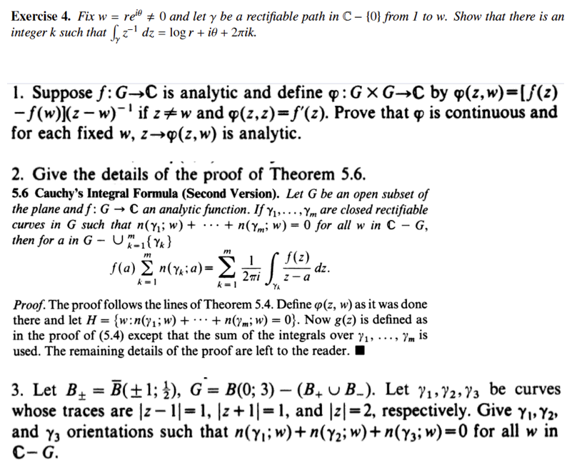 Exercise 4. Fix W = reit # 0 and let y be a rectifiable path in C -...