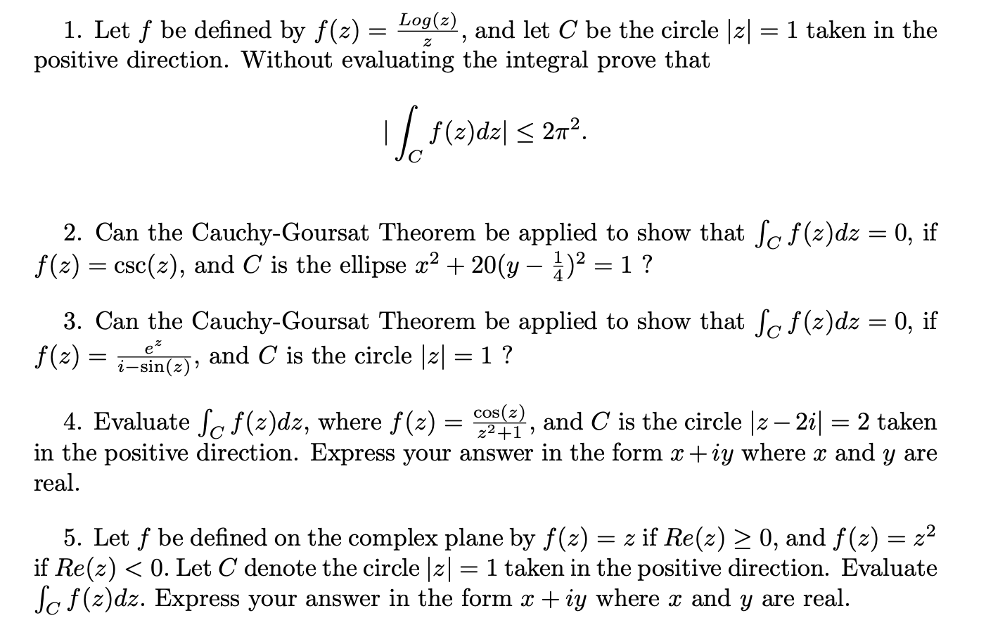 1. Let f be defined by f(z) = Log(E), and let C be the circle [z| =...
