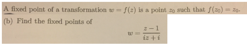 A fixed point of a transformation W = f(z) is a point 20 such that...
