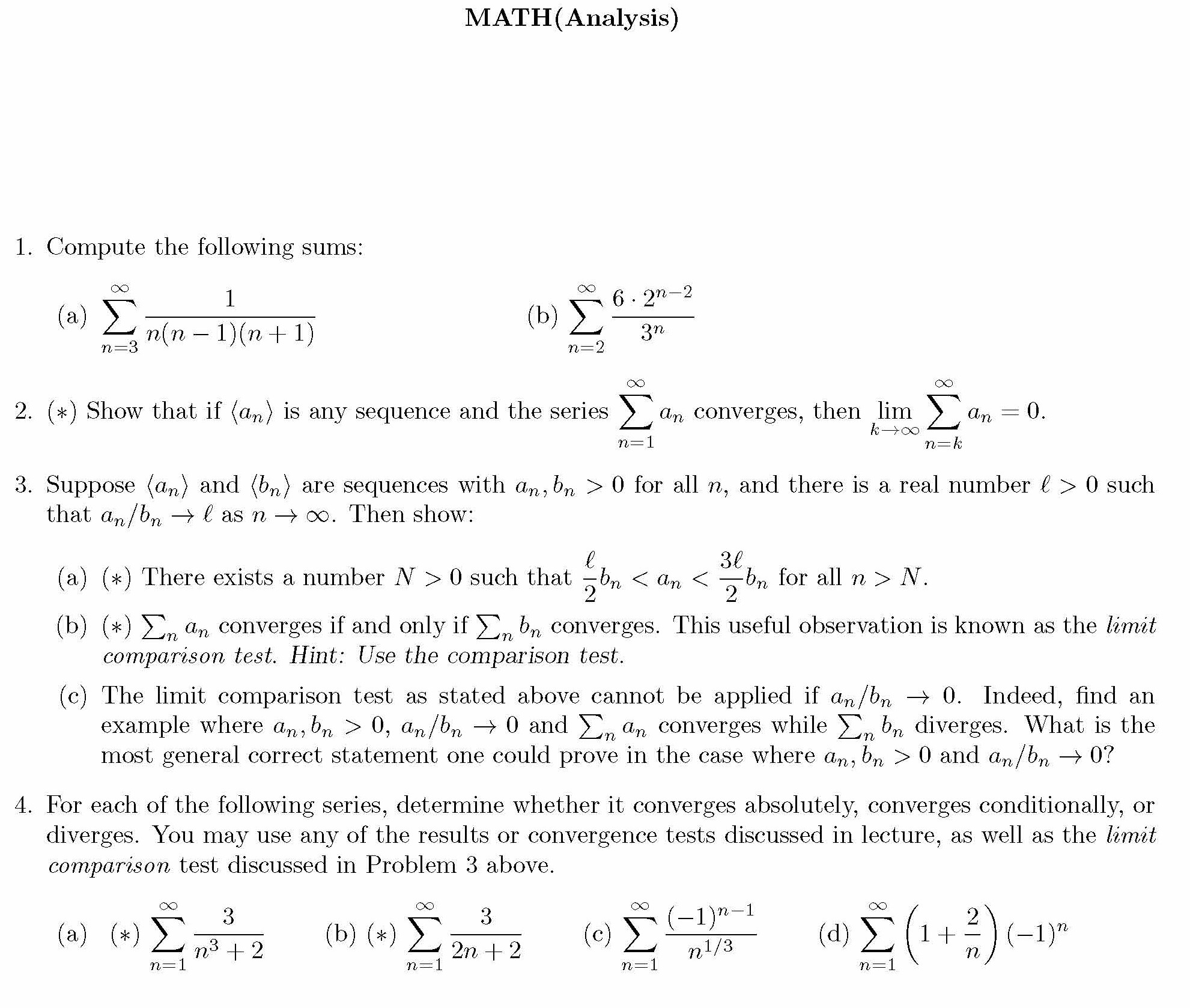 MATH (Analysis) 1. Compute the following sums: de 1 (b) E 3n 6...