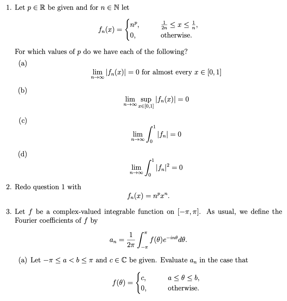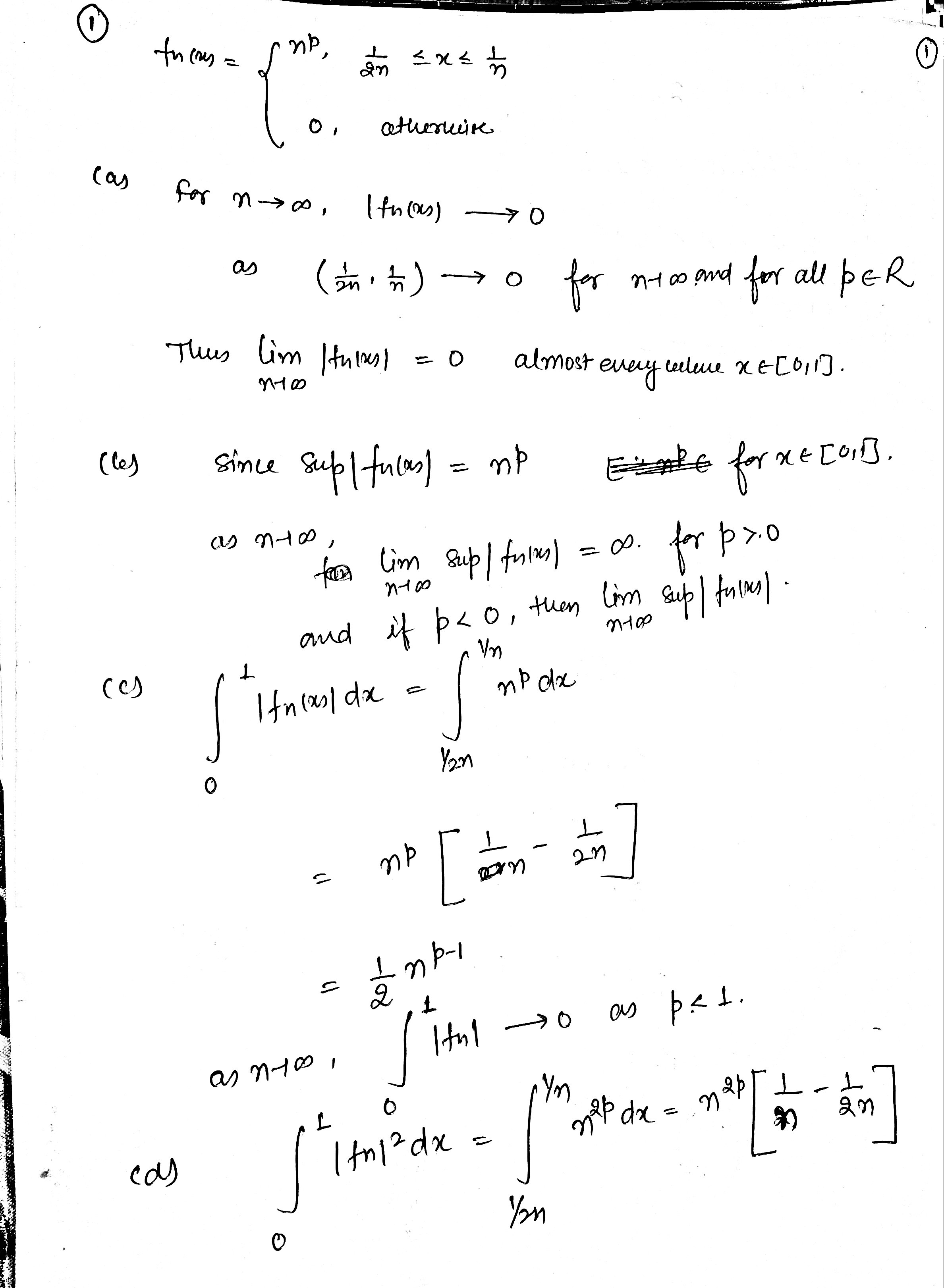 1. Let p € R be given and for n € N let fn (x) = { nP, 0, , n...