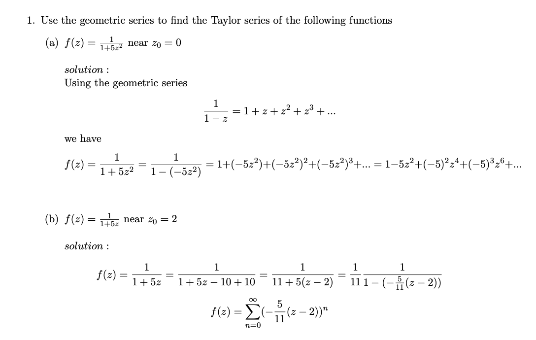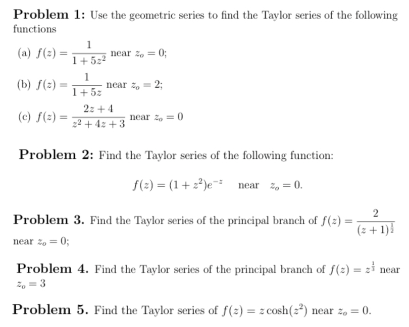 Problem 1: Use the geometric series to find the Taylor series of th...