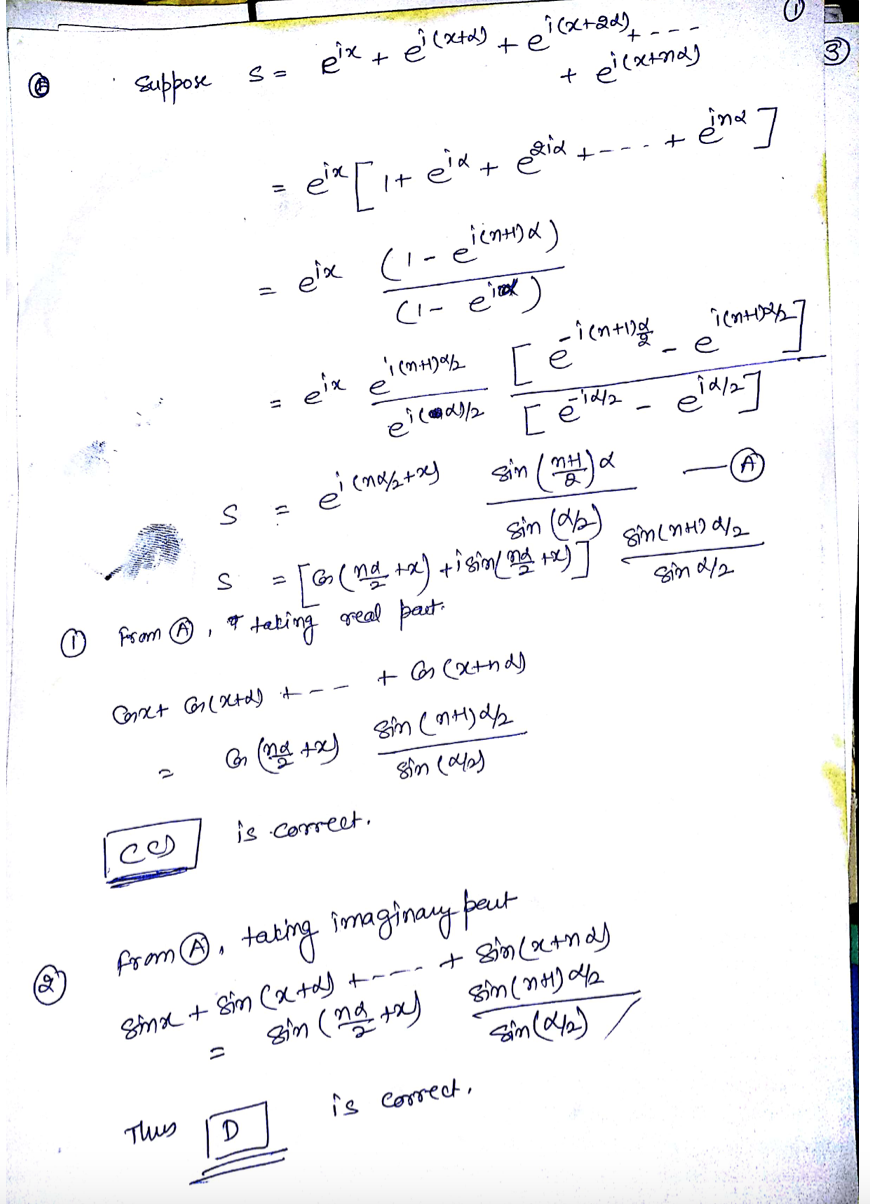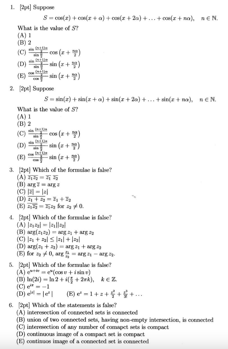1. [2pt] Suppose S = cos(x)+c(+a)+cos(x + 2a) +... + cos(x+na), n ...