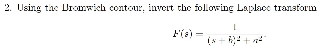 2. Using the Bromwich contour, invert the following Laplace transfo...