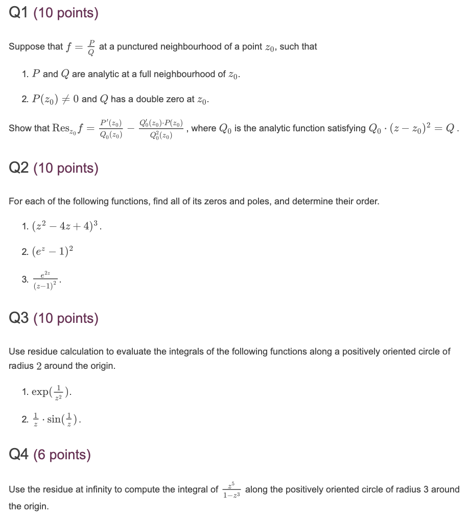 Q1 (10 points) Suppose that f = at a punctured neighbourhood of a...