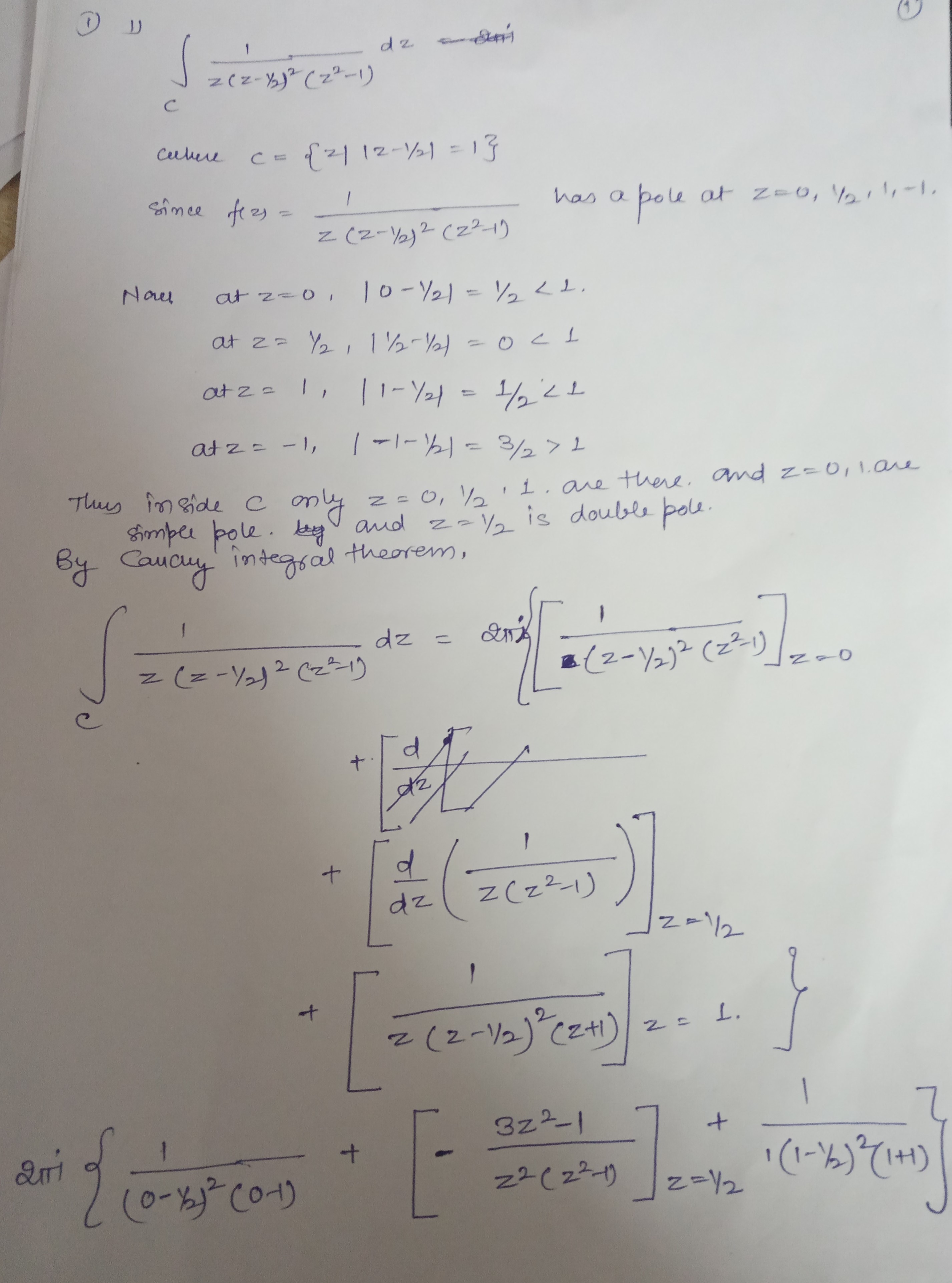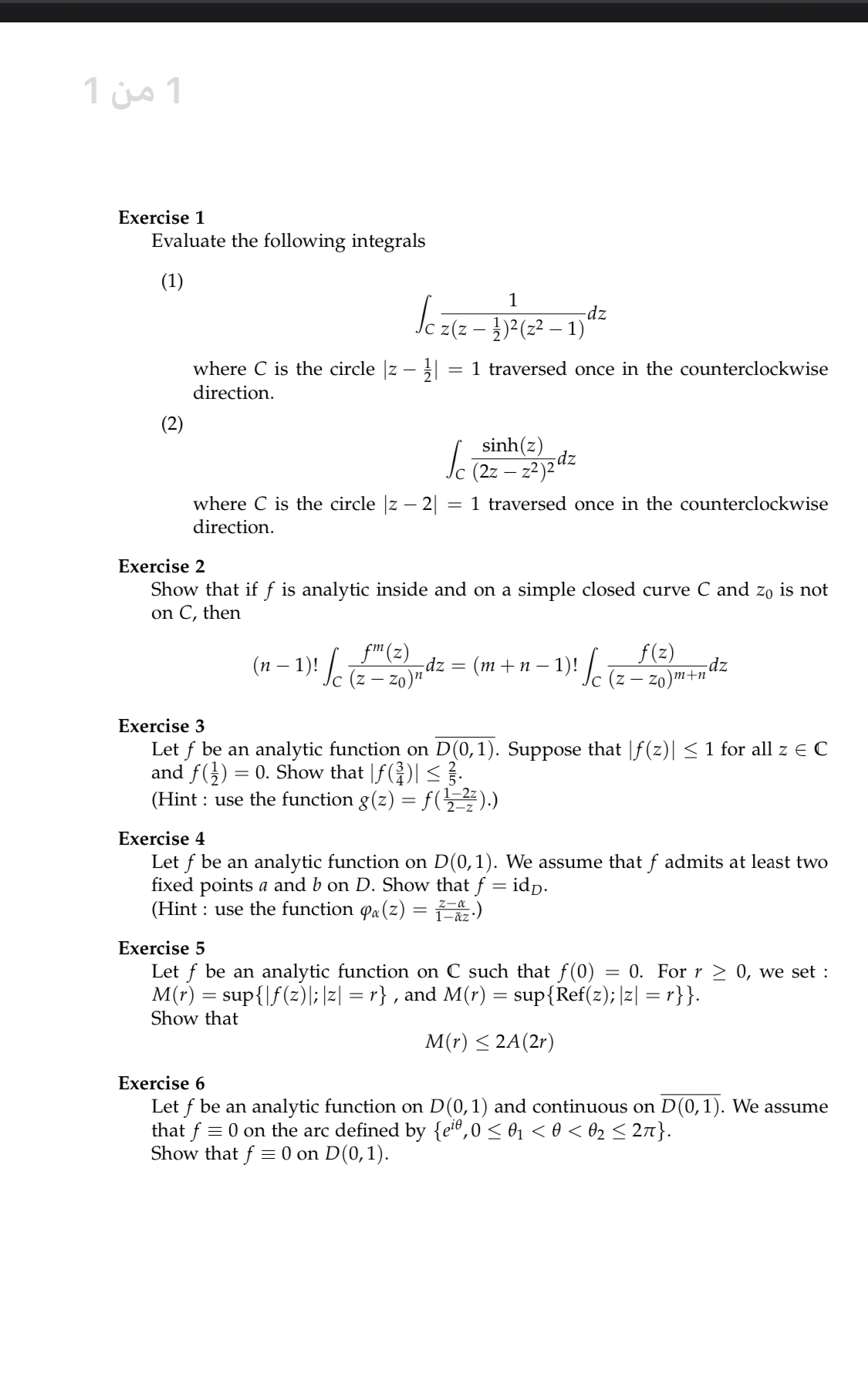 1 is 1 Exercise 1 Evaluate the following integrals (1) 1 dz C...