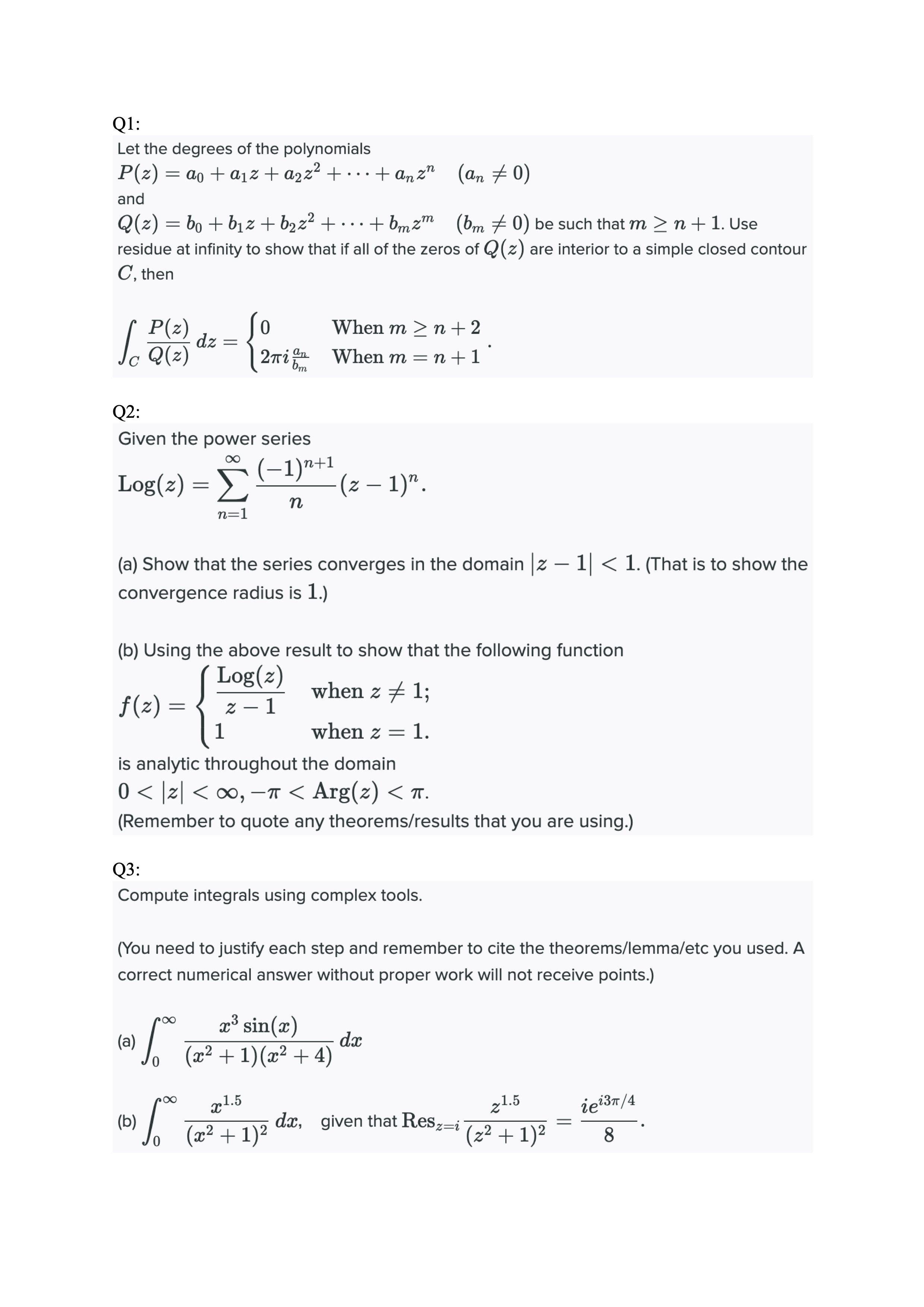 Q1: Let the degrees of the polynomials + + an z² (an + 0) and...
