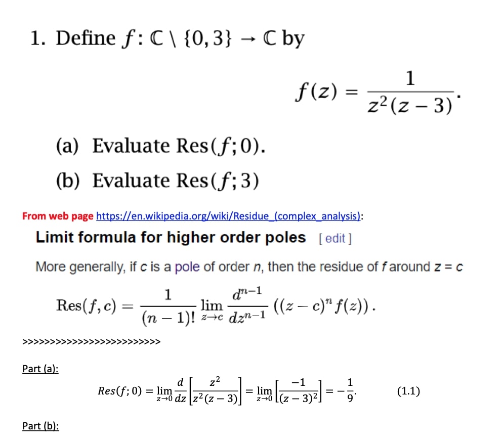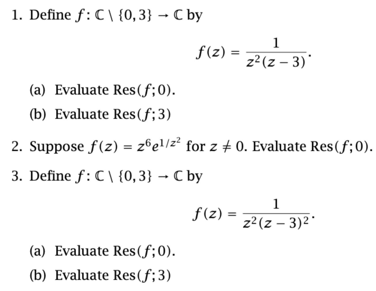 1. Define f : C \ {0,3} C by 1 f(z) = . z² (z - 3) (a) Eva...