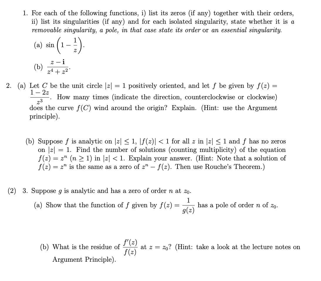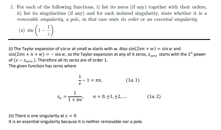 1. For each of the following functions, i) list its zeros (if any)...