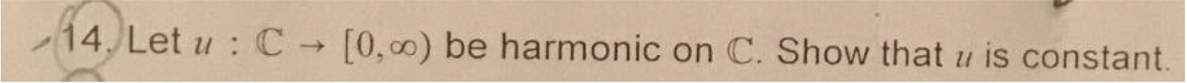 14. Letu : C [0,00) be harmonic on C. Show that u is constant.