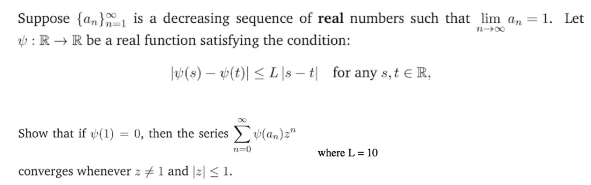 Suppose {anjn=1 is a decreasing sequence of real numbers such that...