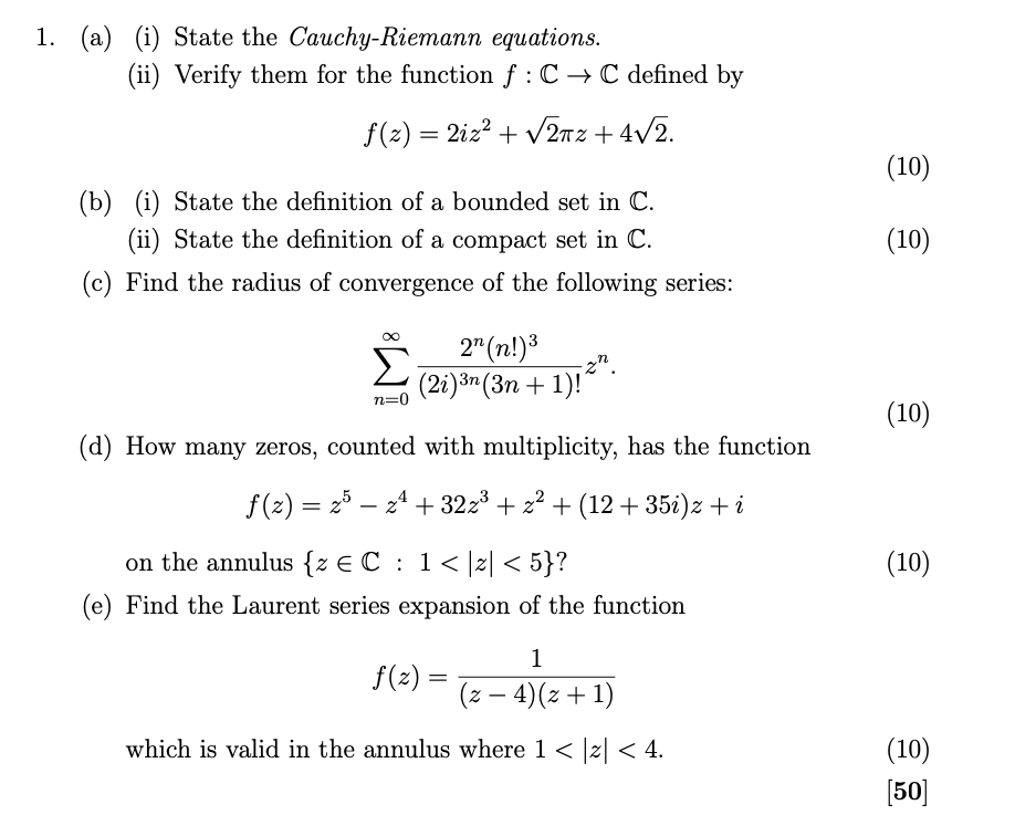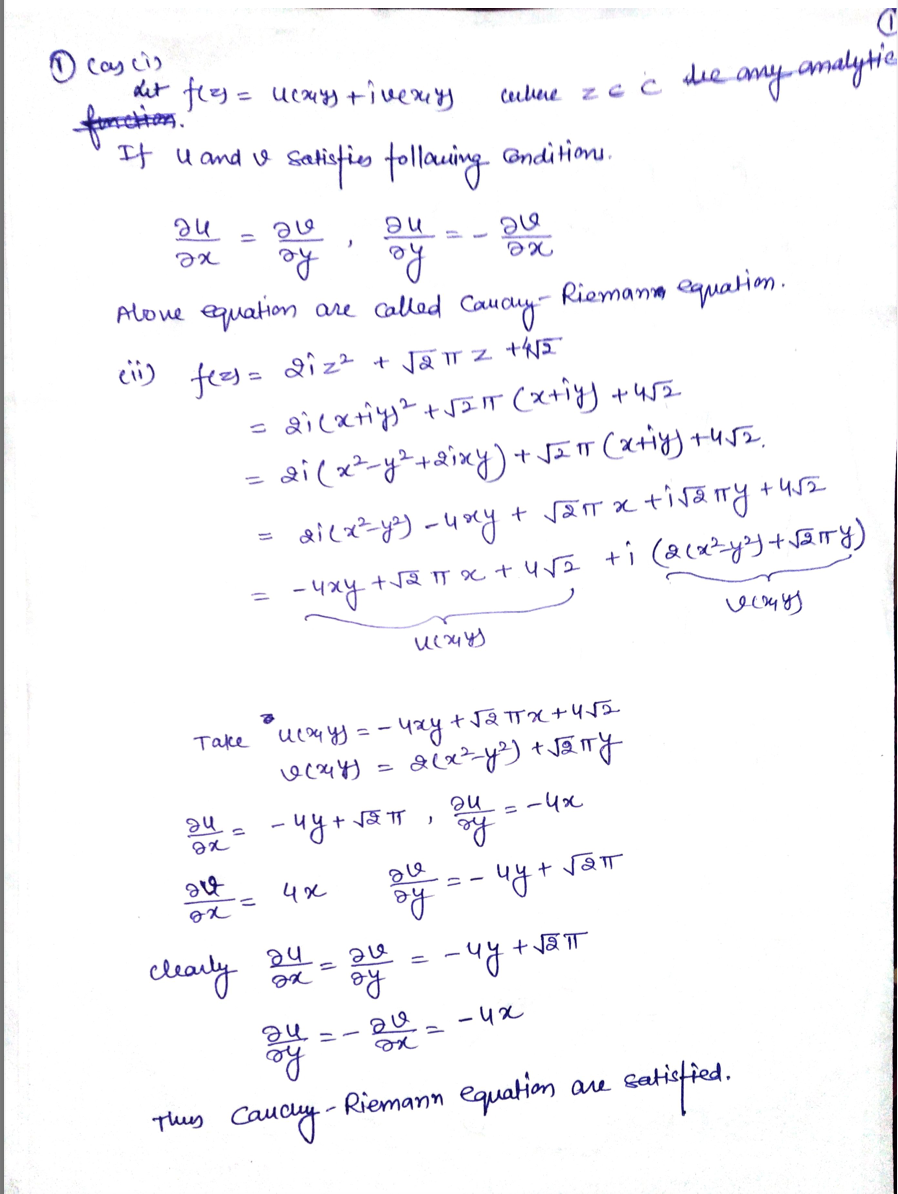 1. (a) (i) State the Cauchy-Riemann equations. (ii) Verify them f...