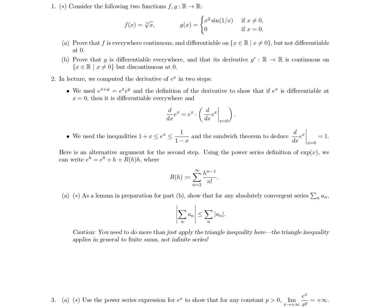 1. (*) Consider the following two functions f,g:R R: f(x) = x, i...